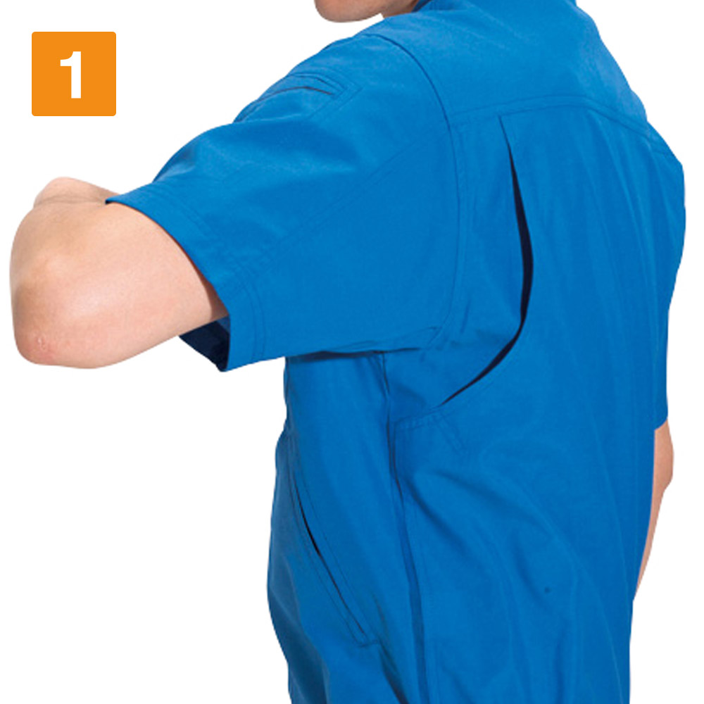 体の熱を逃がしやすい半袖設計のワークブルゾン
