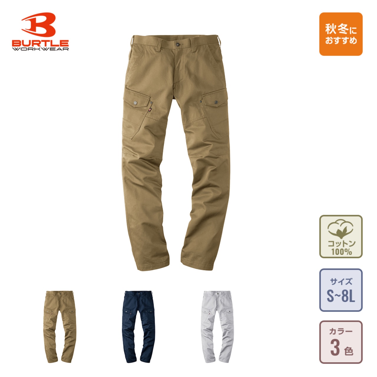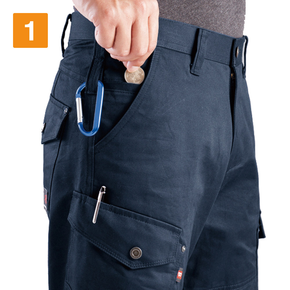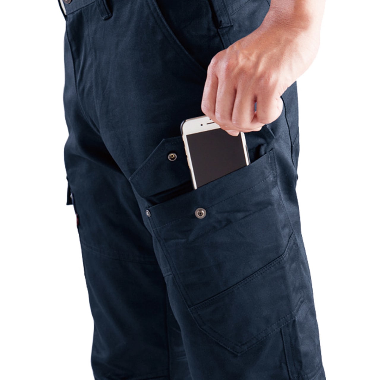 スリムなシルエットで作業の邪魔にならない綿100%素材のワークパンツ
