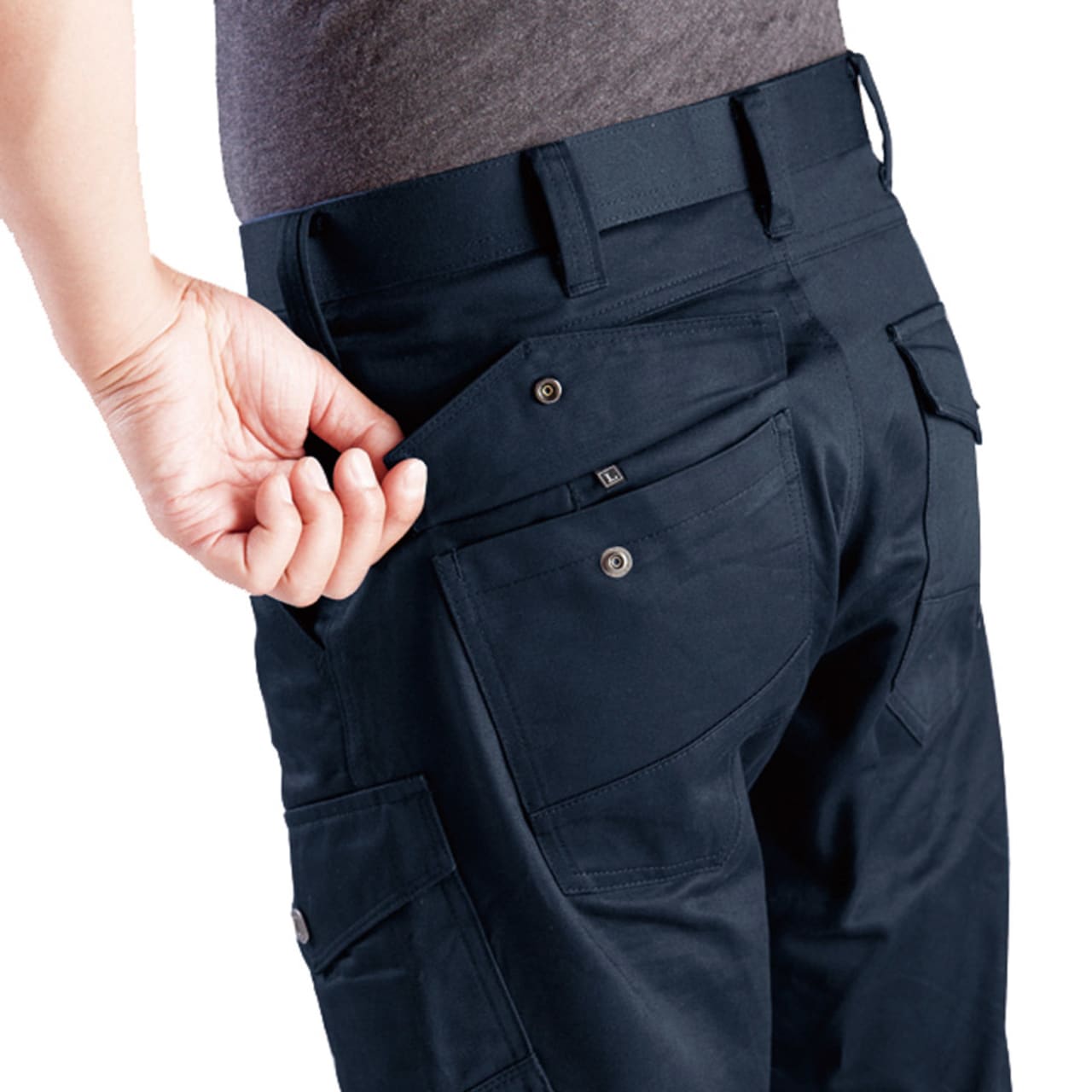 作業用パンツに求める要素のひとつが耐久性です。どれほど動きやすく快適なワークパンツでも、耐久性が低いと短いスパンで買い替えなくてはなりません。短いサイクルで買い替えが必要となれば、ランニングコストが必要以上にかさんでしまうおそれもあるでしょう。しかし、こちらのワークパンツは耐久性に定評のある、高密度肉厚綿ツイル素材を使用。耐久性の高さが特徴です。肉厚に仕上げた生地は丈夫で強く、外部からのダメージも最小限に留めます。洗濯耐久性も高いため、生地の縮みが少なく、肌触りがよいのも選ばれている理由のひとつです。