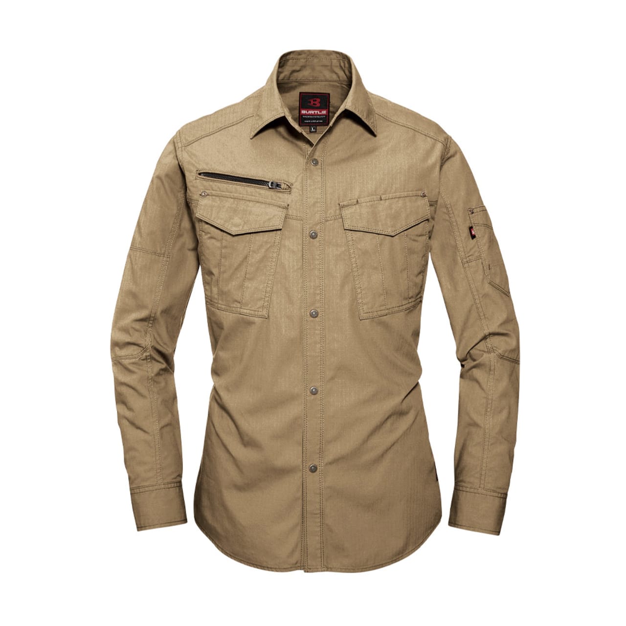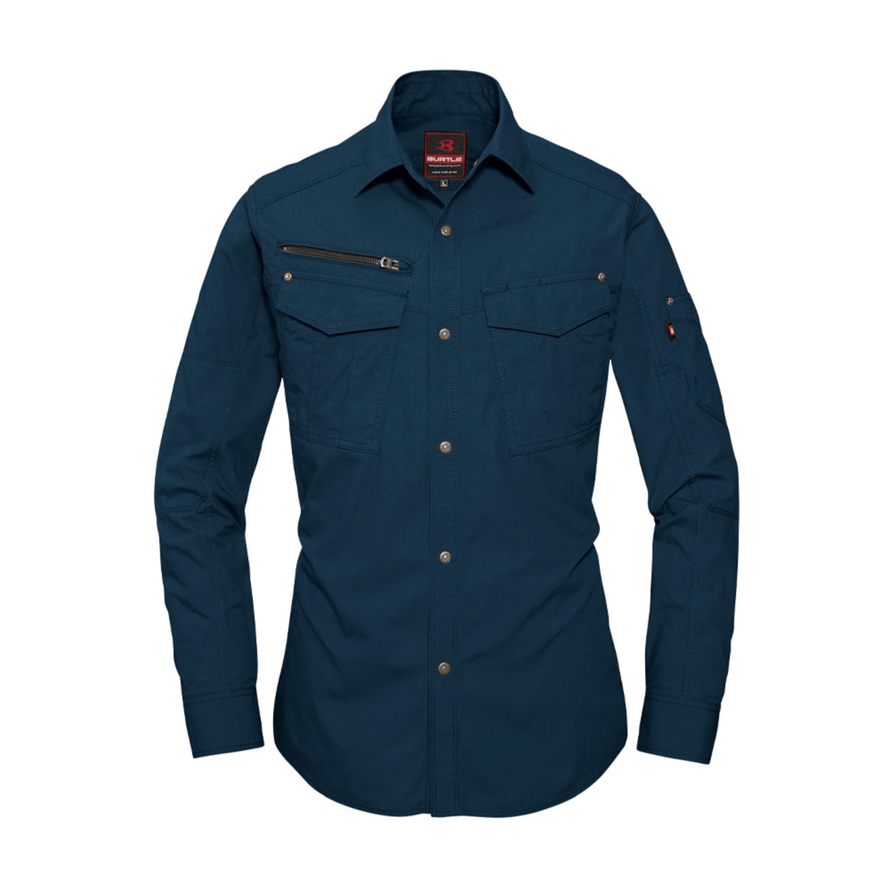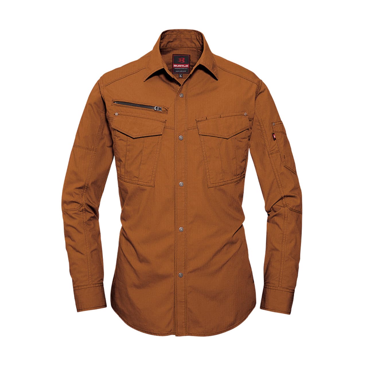 適度な厚みをもたせたリップクロス生地で仕上げてあるため、過酷なワークシーンにおいて活躍してくれます。強度があるため破れや穴などが生じにくく、丈夫で長持ちしてくれるアイテムです。頻繁に買い替えをしなくてよいため、コストパフォーマンスの良さも魅力です。防縮性に優れているのも、大きな特徴といえるでしょう。一般的な綿製品は、洗濯で生地の縮みが生じる傾向がありますが、こちらのシャツは製品洗い加工により防縮性の高さが特徴です。どんな方でも安心して長く着用できるワークシャツです。