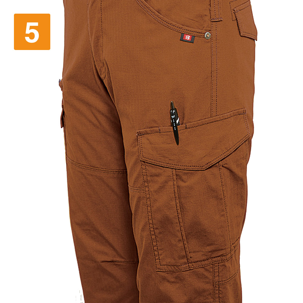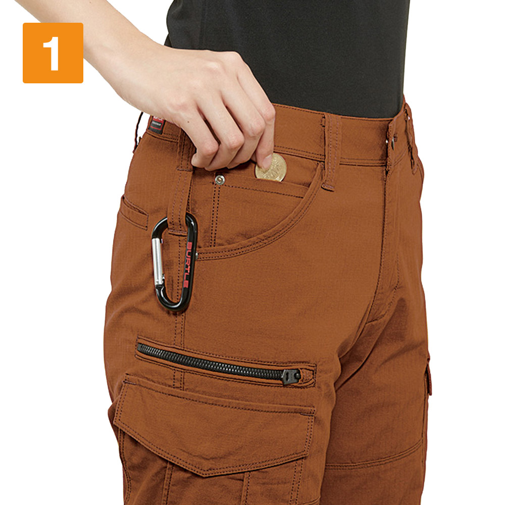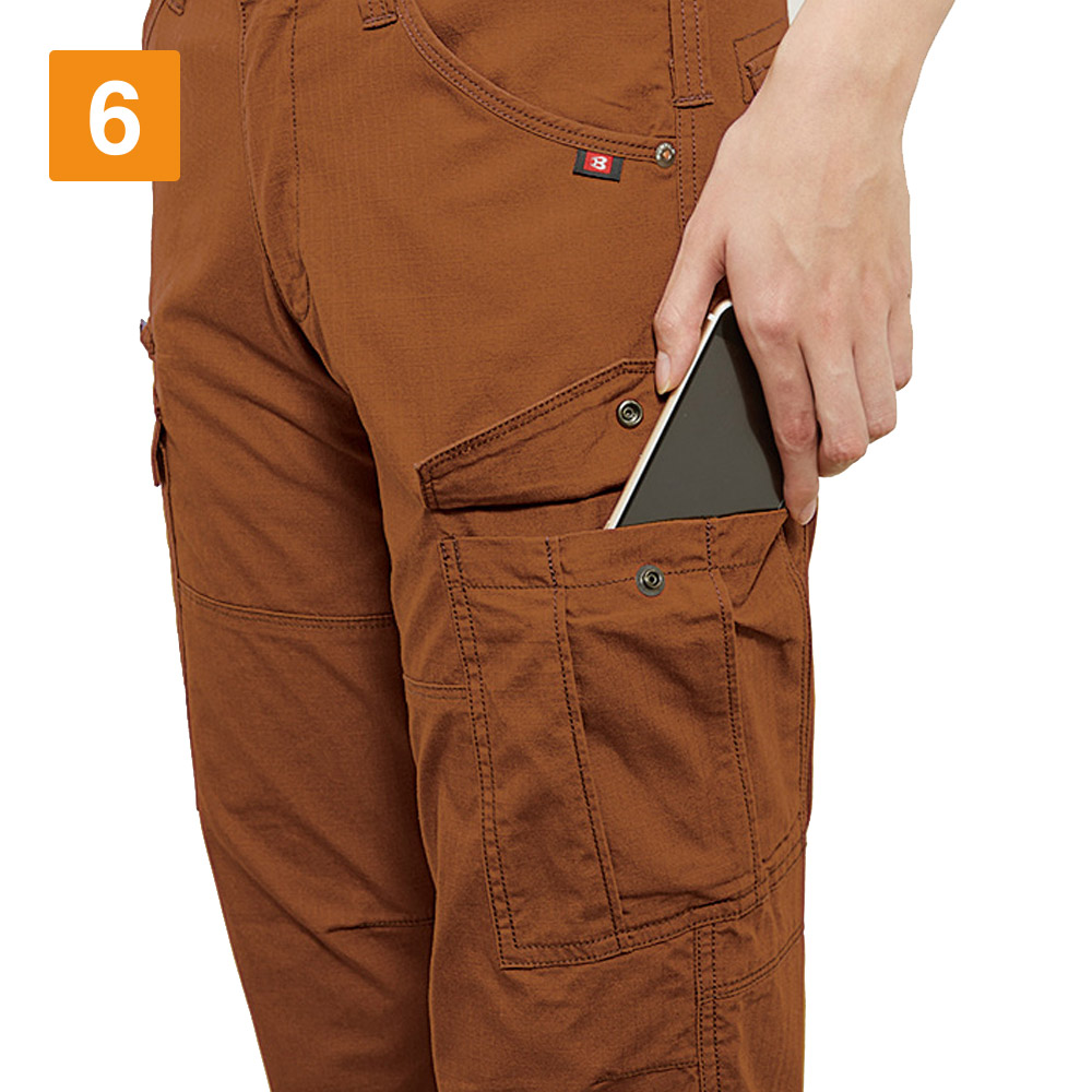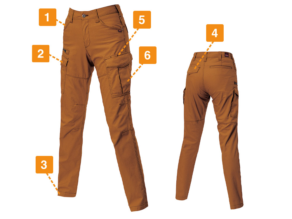 作業用パンツとしてふさわしい機能を備えたアイテムのため、着用する現場を選びません。適度なツヤ感と使い慣らした風合いが印象的ですが、あらゆる現場にマッチします。ユニフォームレギュレーションの厳しい現場でも、問題なく着用可能です。綿を使用した適度な厚みのリップクロス生地を採用し、保温性にも定評があります。吸水性にも優れているため、汗をたくさんかいても素早く吸収します。こうした特性から、秋冬のみならず春夏シーズンの着用も可能なアイテムです。