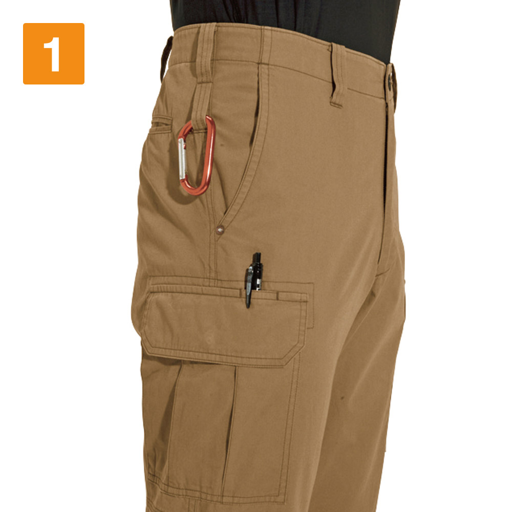 建設や運送、物流などのほか、工場での作業や検品など、あらゆる業種、現場にマッチするワークパンツです。派手さを抑え、ワークパンツに必要な機能を備えたアイテムのため、多彩なワークシーンで活躍できます。厚手の綿100%生地を使用しているため、十分な保温性を兼ね備えているのも特徴です。内部の熱を外へ逃がしにくい設計のため、秋冬シーズンにおいて重宝できますワーカーの体温低下を防ぎ、パフォーマンスやクオリティの低下を防具ことができるでしょう。