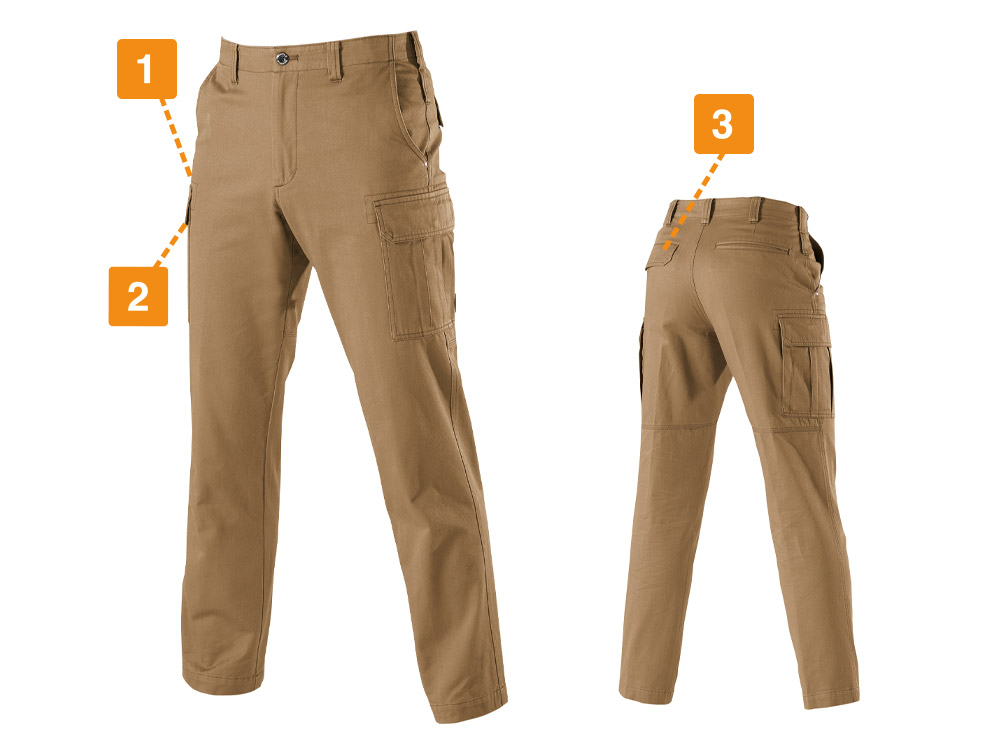 現場を問わず着用できるベーシックデザインのワークパンツ