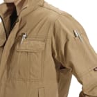 ライトチノ生地を採用した、実用性にあふれるワークジャケットです。アメリカンワーカーのワークウェアを彷彿させる武骨なデザインが印象的ですが、作業用ジャケットに求められる機能も盛り込んだアイテムとなります。綿100%素材の生地なため肌触りがよく、快適に着用できるのも魅力です。綿は吸汗性の高い素材のため、汗をかきやすい春夏シーズンに適しています。また熱がこもりやすい室内でも常に快適なコンディションを維持してくれます。薄手の生地を採用しているためごわつきが少なく、動きやすいのも魅力的なポイントです。