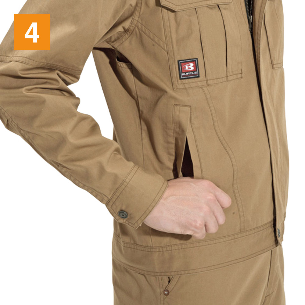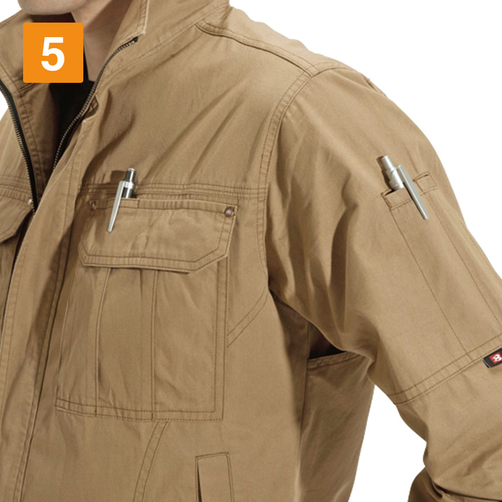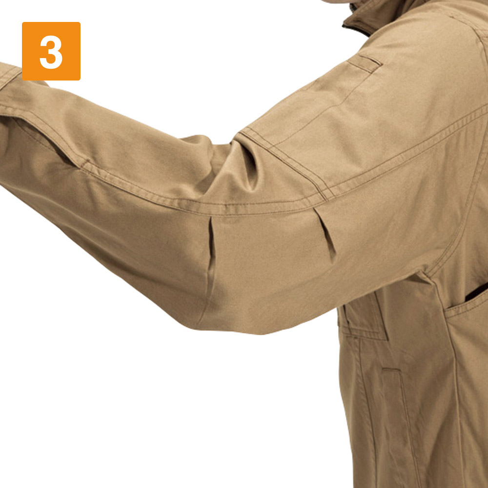 忙しく現場を駆け回るワーカーや動きの多い方にもおすすめのアイテムです。メインの素材として使用されている綿は、冬はあたたかく夏は涼しい特性をもちます。汗をしっかりと吸収し、素早く熱を外に逃がしてくれるため、暑さの厳しい時期でもワーカーを不快にさせません。チノクロス生地は通気性もよいため、インナーが汗で濡れても短時間で乾いてくれます。常に快適な状態で作業ができるため、パフォーマンスや集中力の低下を防ぎ、業務効率、生産性の向上効果が期待できます。
