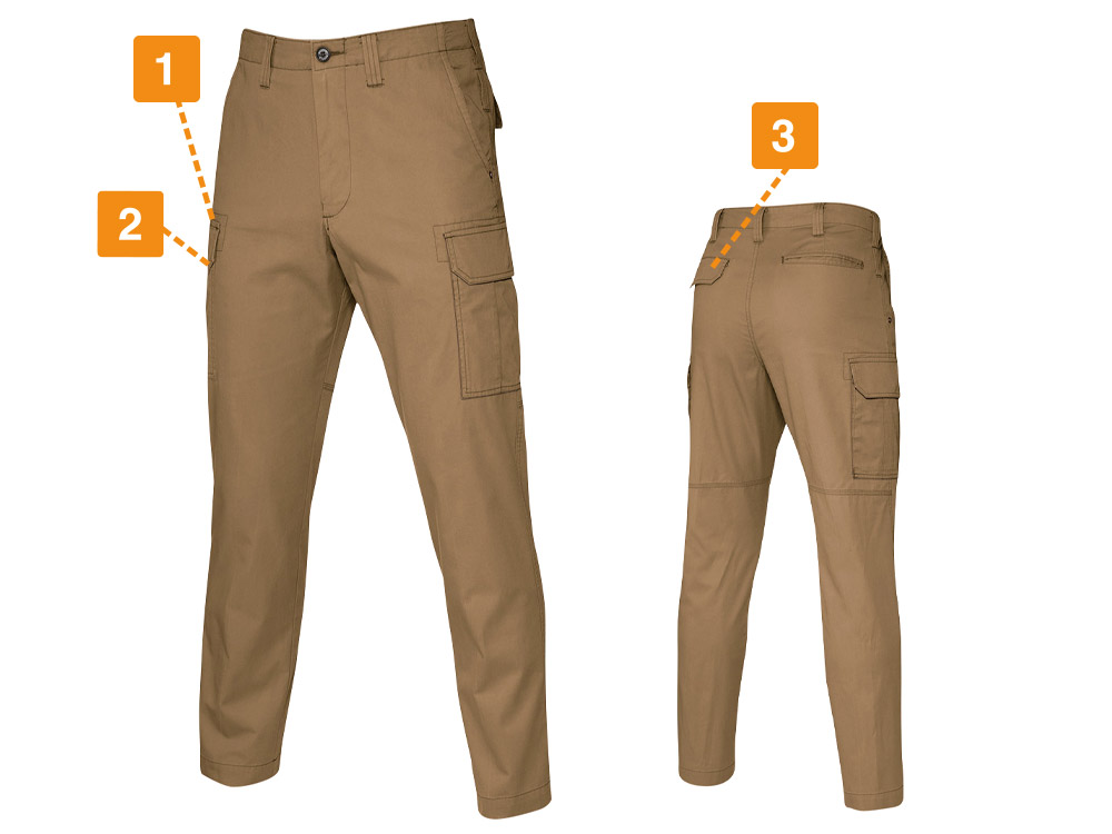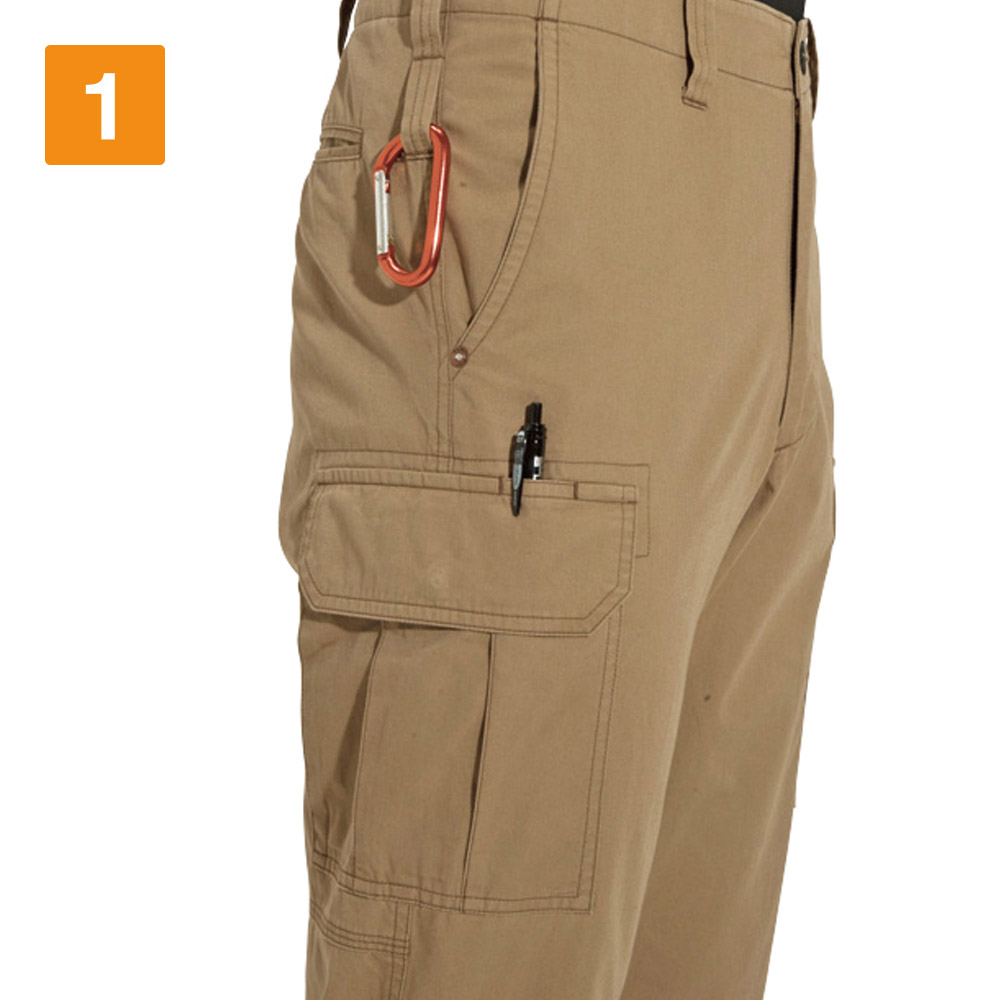 ハードなアクションが求められる現場で活躍しているワーカーにとって、暑さや汗への対策は必須です。汗をたくさんかくと不快なべたつきが発生し、ストレスの原因にもなります。集中力の低下も招き、ひいてはパフォーマンス、クオリティの低下も生じかねません。そこでおすすめしたいのが、こちらのカーゴパンツです。自然な吸汗性を実現したアイテムで、春夏シーズンにおいてもしっかりとワーカーの汗を吸収してくれます。ライトチノ生地は通気性がよいため涼しく、快適に業務を遂行できます。