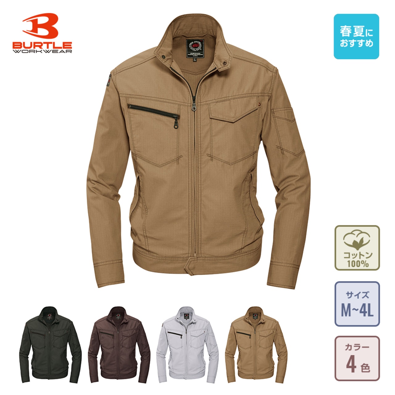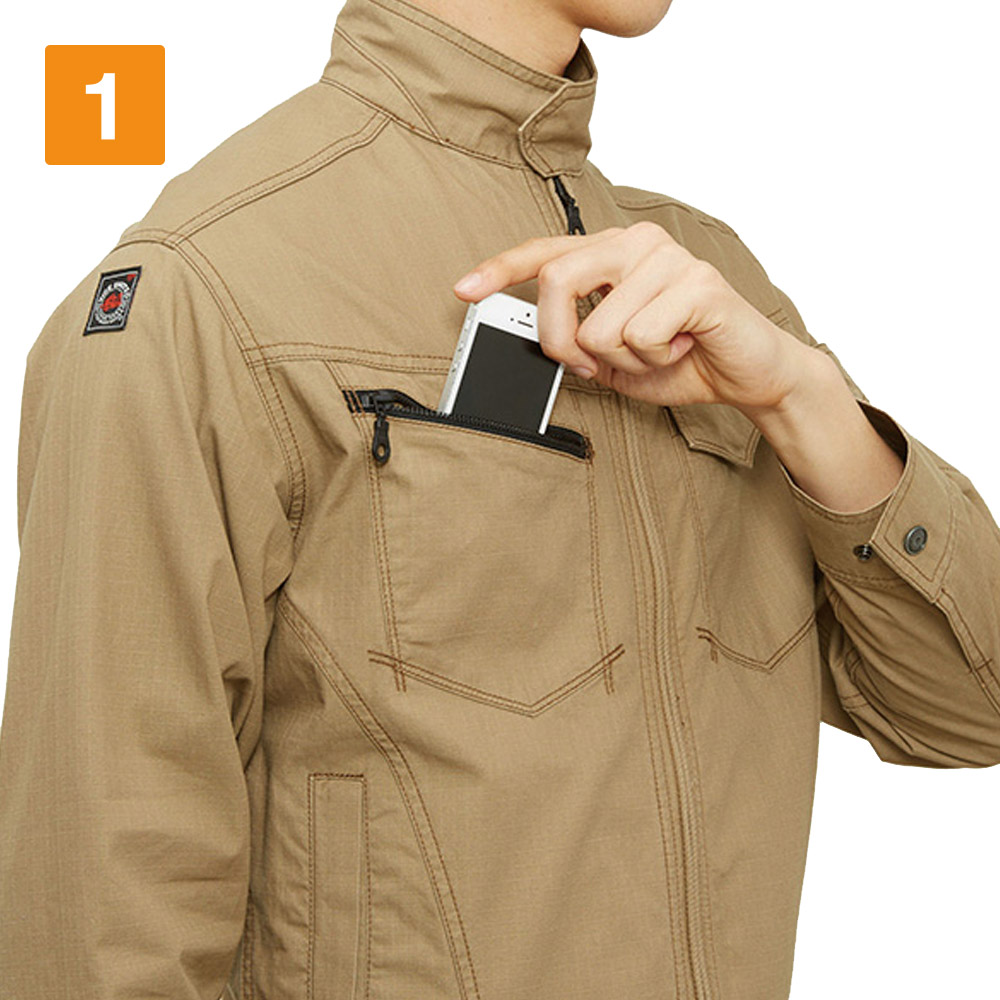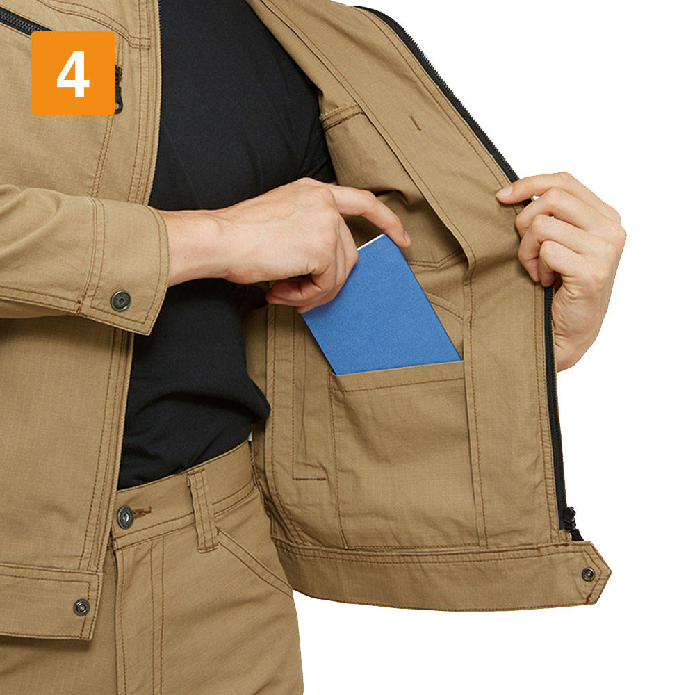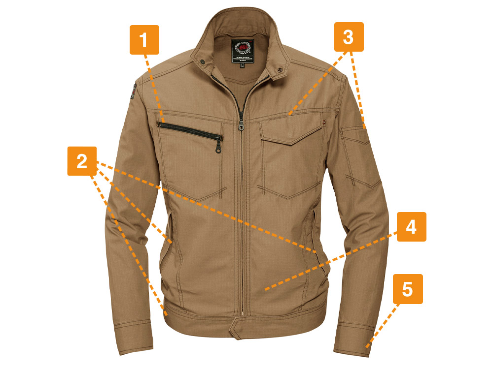 ワークウェア選びでは、吸汗性も重要なポイントです。特に、春から夏にかけての時期は汗をかきやすく、不快な状態で業務に従事しなければならないシーンも少なくありません。春夏シーズンでも快適に仕事をしたい、と考えるワーカーにこそ、こちらの5101ジャケットがおすすめです。天然素材ならではの自然な吸汗性を実現しており、たくさん汗をかいてもしっかり吸収してくれます。汗によるべたつきが少ないため、ワーカーのストレス軽減効果も期待できるでしょう。ファスナータイプのジャケットなため、暑いときはファスナーを下しても使用できます。