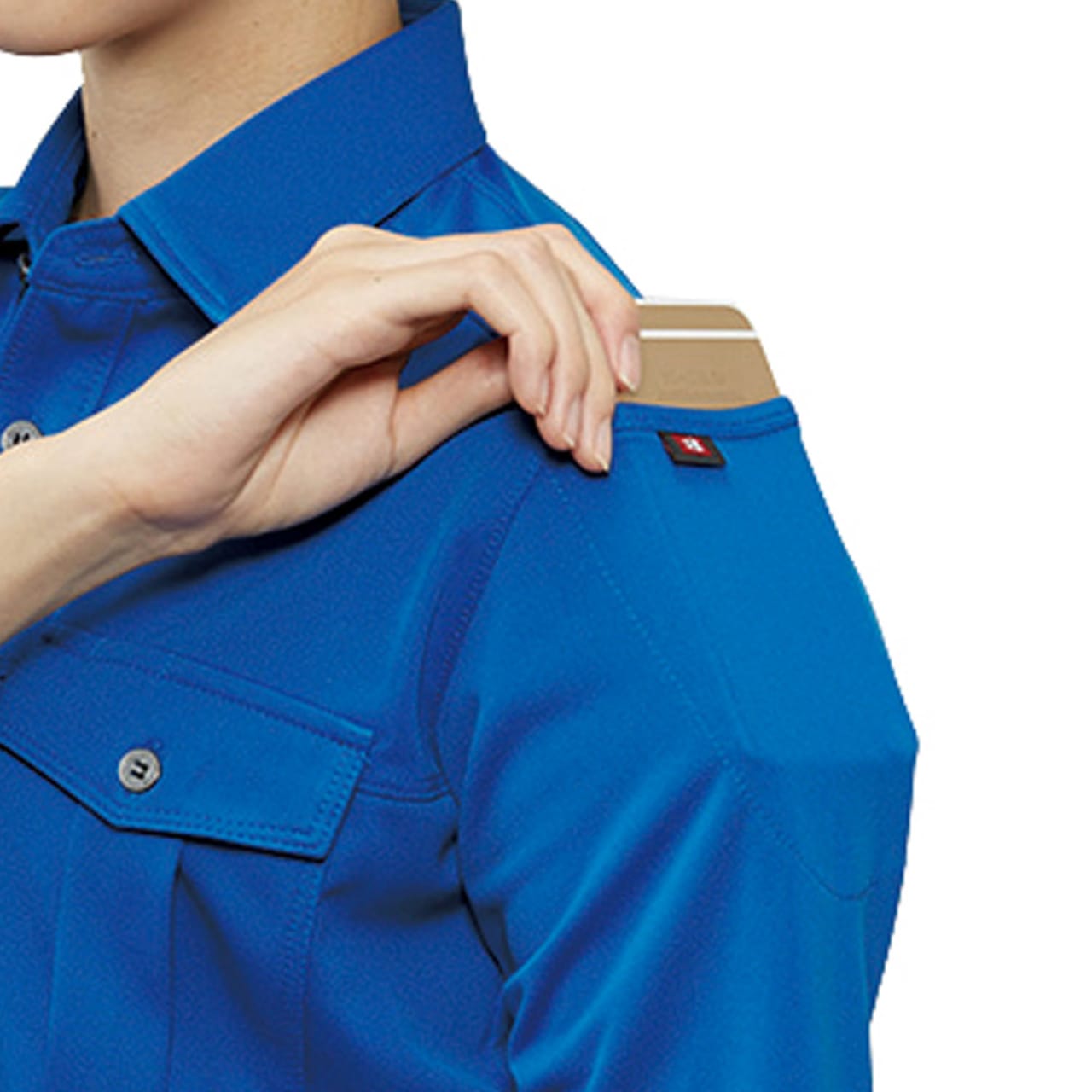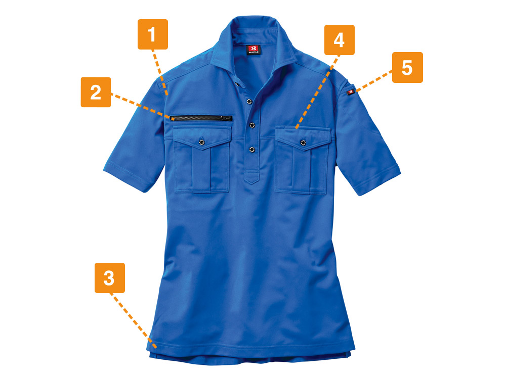 この半袖シャツは、日本製のトリコット素材を厳選して使用しているところもおすすめポイントです。こちらの素材は、吸汗速乾加工がなされています。汗をかいても服が体にまとわりつく、べたつくような心配がありません。いつまでもサラサラとした着心地をキープできるので快適に作業できます。さらに脇の部分には、消臭テープがあしらわれているところにも注目です。汗臭さなども低減してくれるので、作業中に体臭を気にすることもありません。
