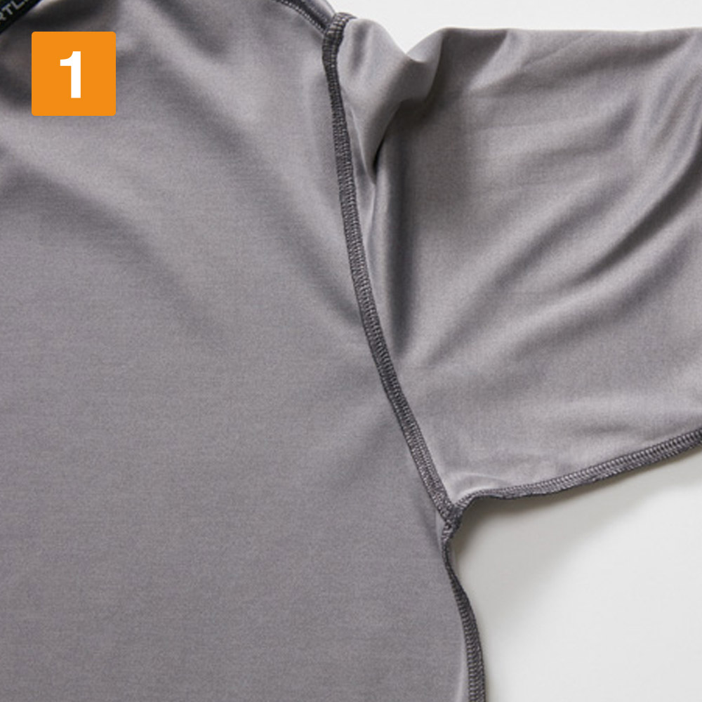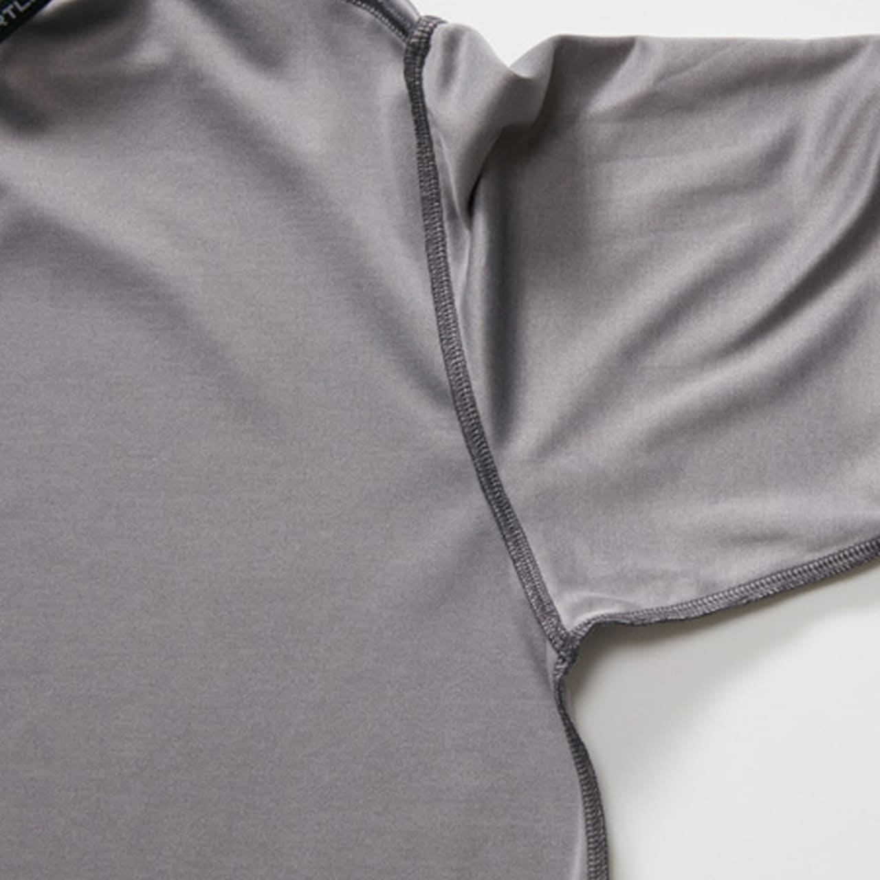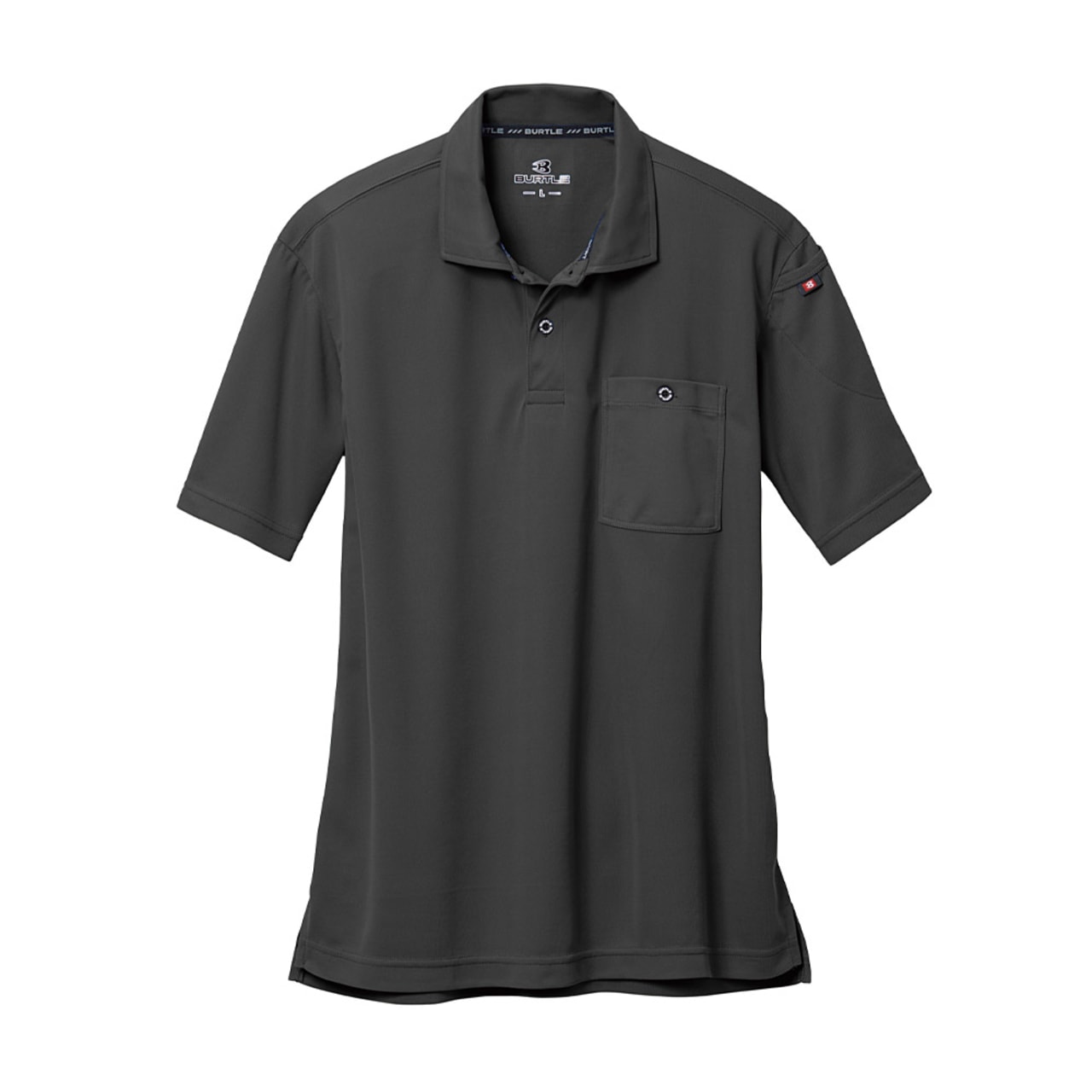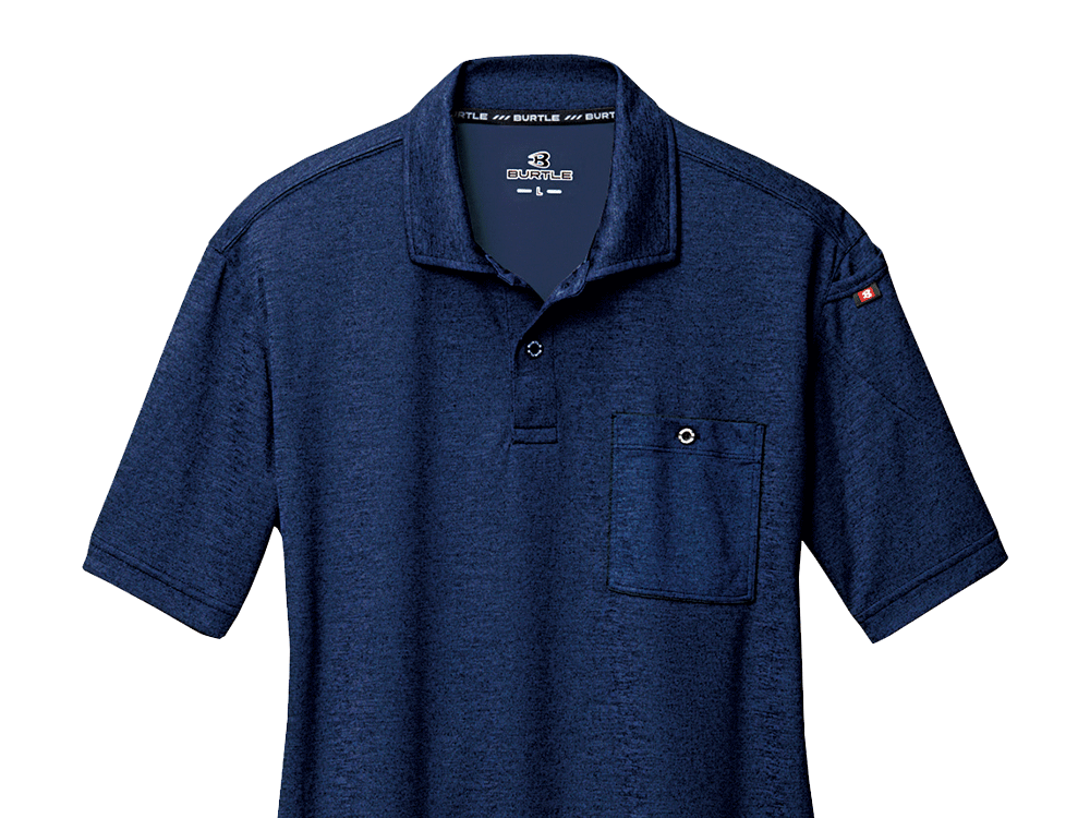 こちらの半袖ポロシャツには、ポリエステルが100%使われています。薄手の生地なので、夏場の厳しい暑さの中でも服に熱がこもる心配がありません。また、ドライメッシュ素材になっているので、通気性にも優れています。また鹿の子編みになっていることで、より快適な着心地を実現しました。鹿の子編みとはニット生地の一種で、表面に凸凹があることが特徴です。フラットになっていないので、肌に触れる面積が少なく、汗をかいても服が肌に張り付くことがなく、さらっとした着心地を維持することが可能です。吸汗速乾加工が施されているので、汗を気にせずに作業できる快適な一着に仕上がっています。