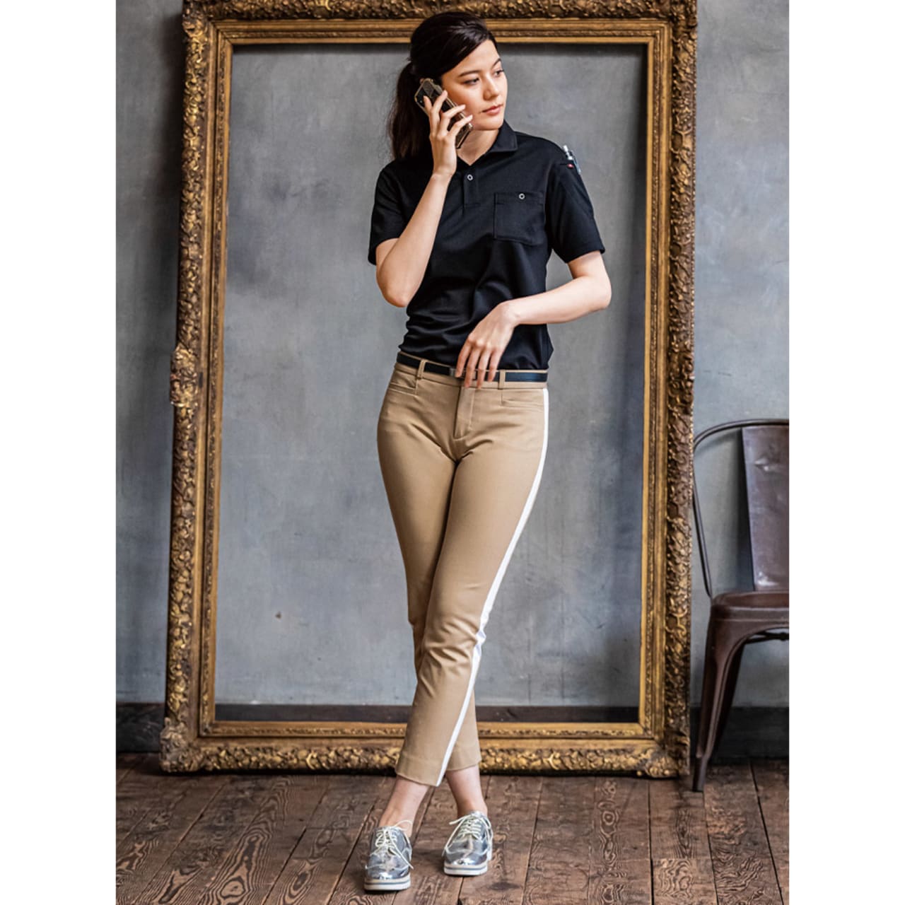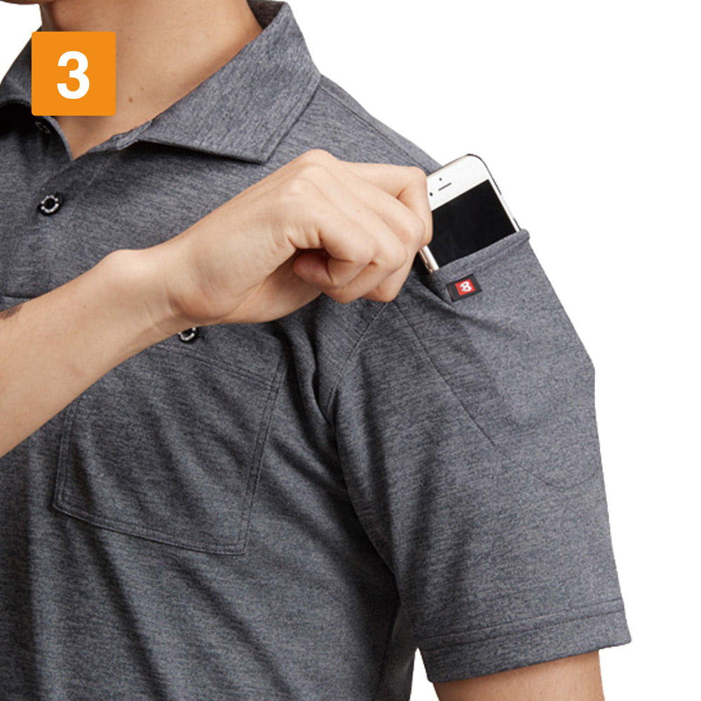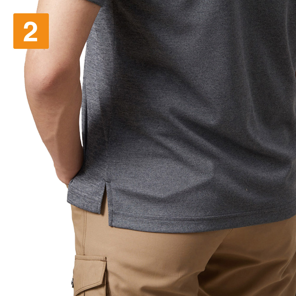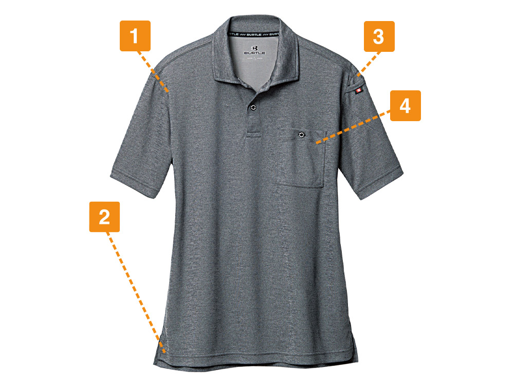 こちらのポロシャツは、ポリエステルで作られていることもあって伸縮性に優れています。そのため、作業中に大きな動きをする際に、着ている服によって制約を受ける心配がありません。さらに脇の部分にはスリットが入っているので、可動域が広く快適で、腕を大きく上げたときでも脇の下が裂けてしまう心配もありません。さらに脇の下には消臭テープがついており、汗による臭いも抑制できます。洗濯などのお手入れも簡単で、繰り返し洗濯しても破ける心配がありません。