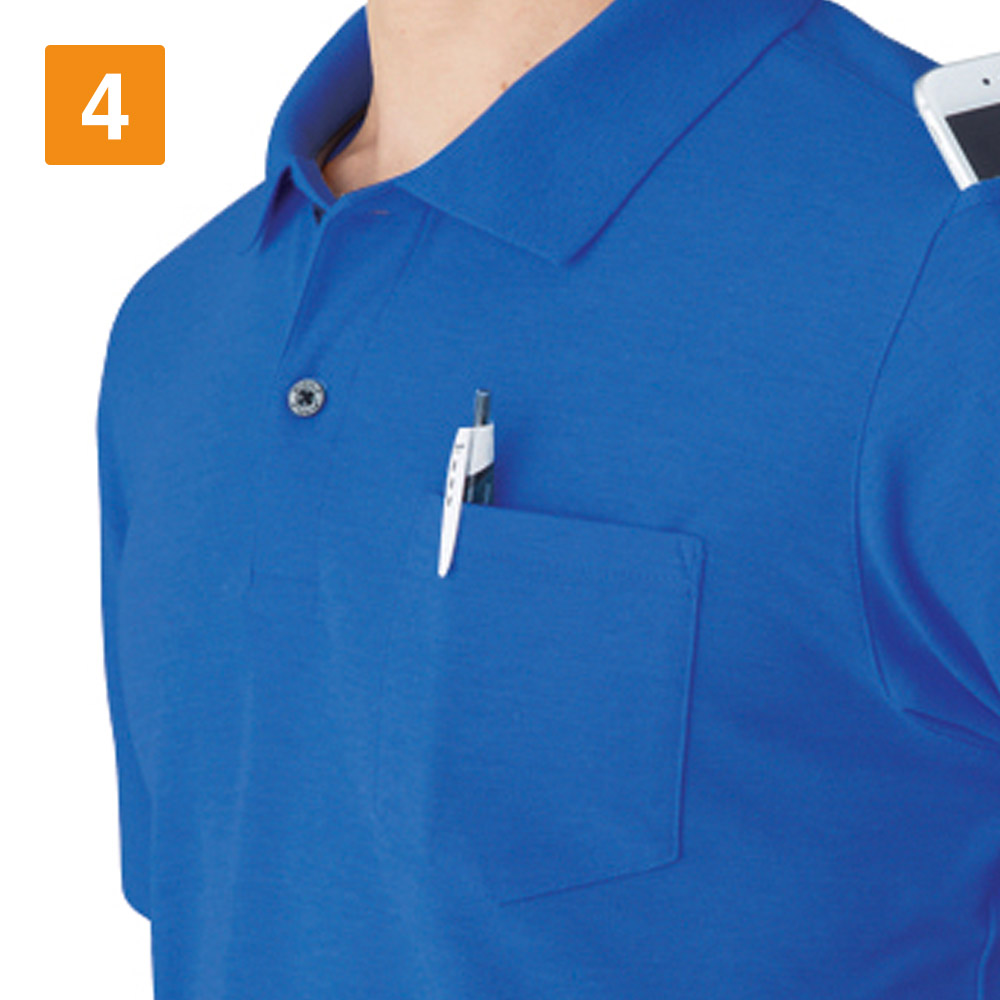 吸汗速乾機能が搭載されているのも、この半袖ポロシャツのポイントです。気温の高い時期に作業していても、この半袖ポロシャツであれば、汗のべたつきを最小限に抑制できます。また、通気性も良いため、いつまでもサラサラとした着心地をキープできます。わきの部分には消臭テープが採用されていため、気になる汗の嫌な臭いをしっかり吸収してくれます。作業着としての機能も十分に備わっており、幅広い業種に使用できる一着となります。屋外だけでなく屋内の作業にも最適なポロシャツです。
