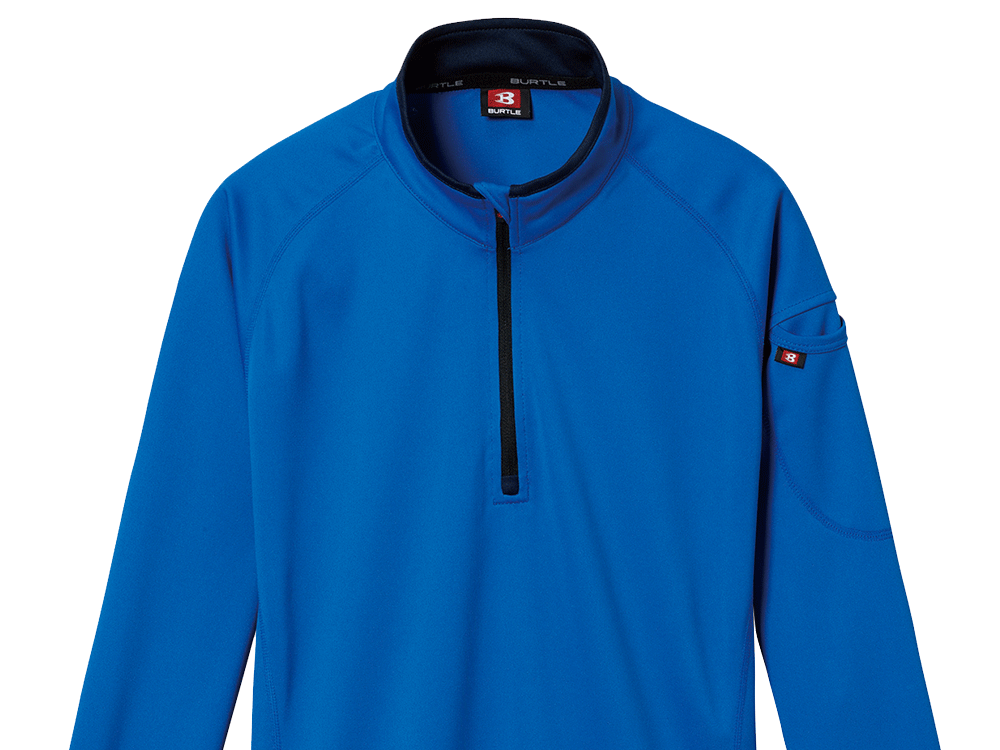 吸汗速乾加工で汗をかいてもべたつかない長袖ジップシャツ