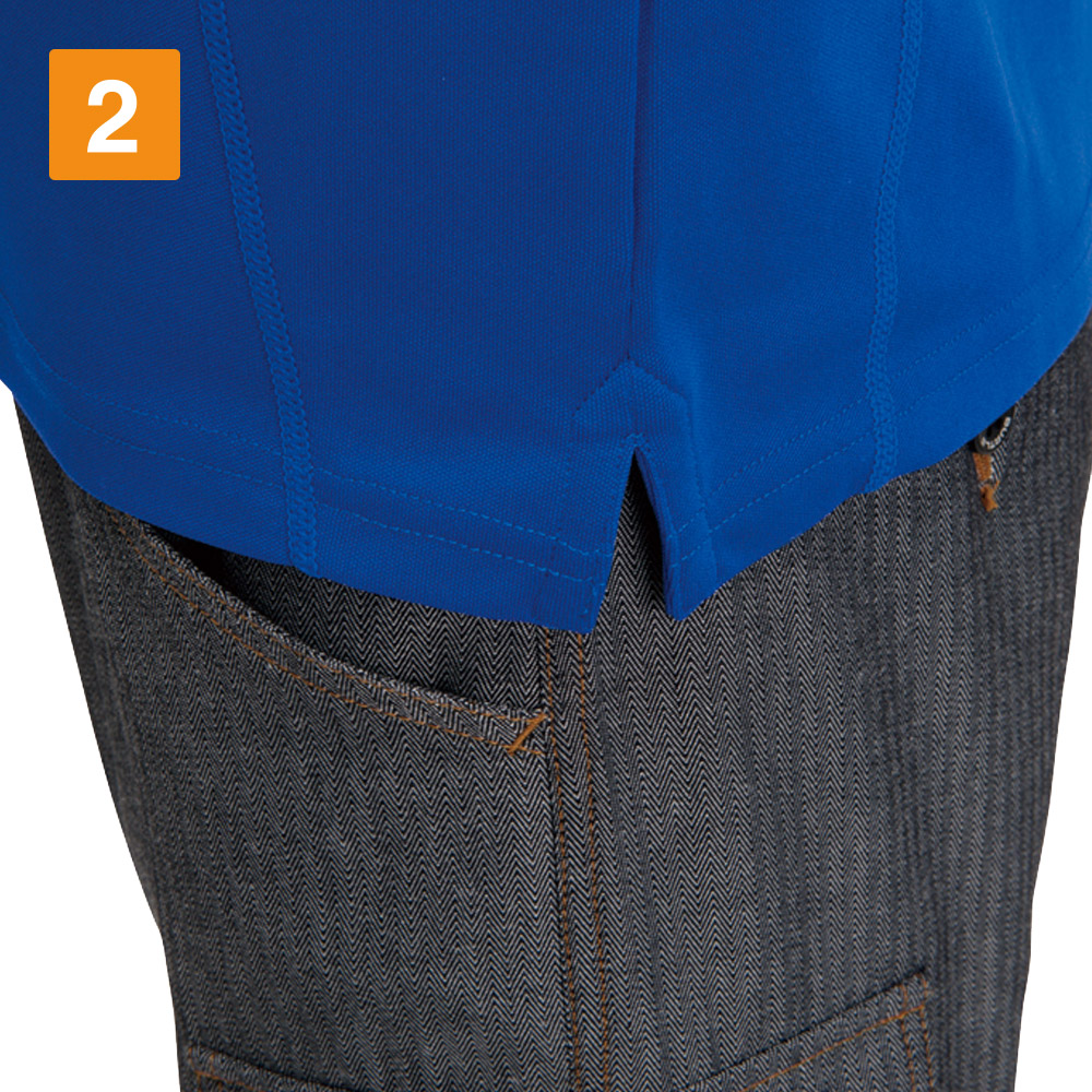 こちらの長袖ジップシャツの特徴の一つに、吸汗速乾性に優れている点が挙げられます。というのもマイクロ鹿の子ドライメッシュ素材を使っているからです。ドライメッシュ素材は通気性に優れています。作業で生じた熱を体外に効率的に逃がします。さらに鹿の子編みがなされていて、表面が凹凸になっているのもポイントです。凸凹しているおかげで肌に設置面積が少ないため、汗をかいても服がべたつくような心配がなく、いつまでもサラサラした着心地が持続します。