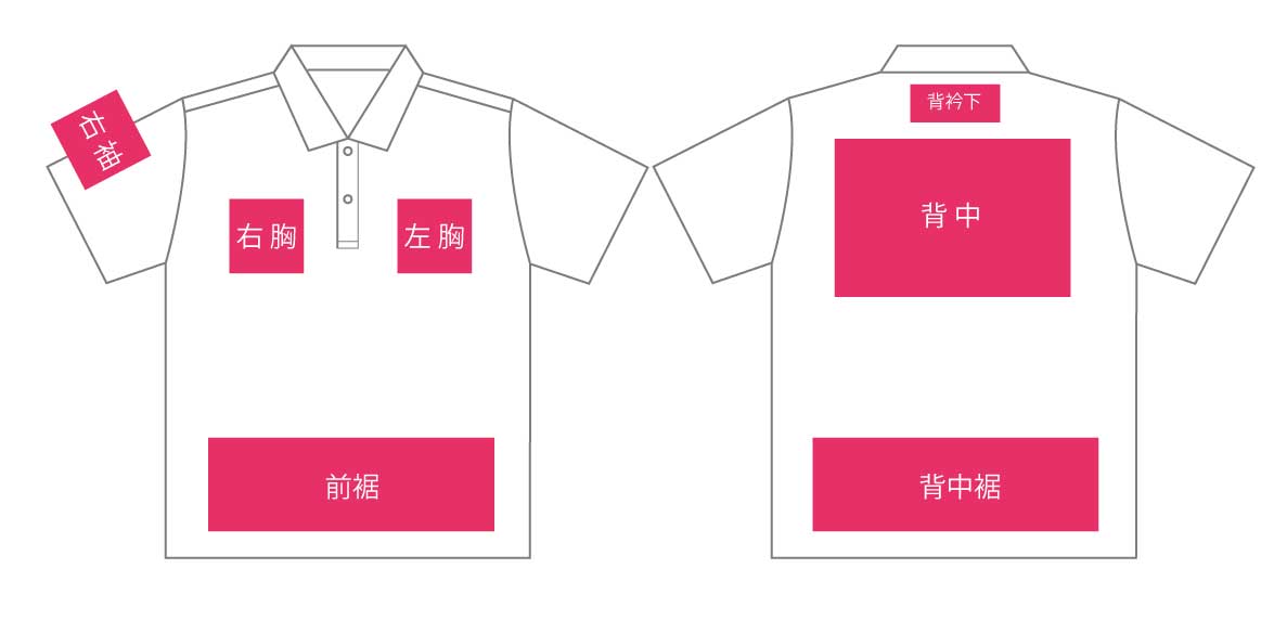 ピンク部分は、刺しゅう、プリントどちらもOK