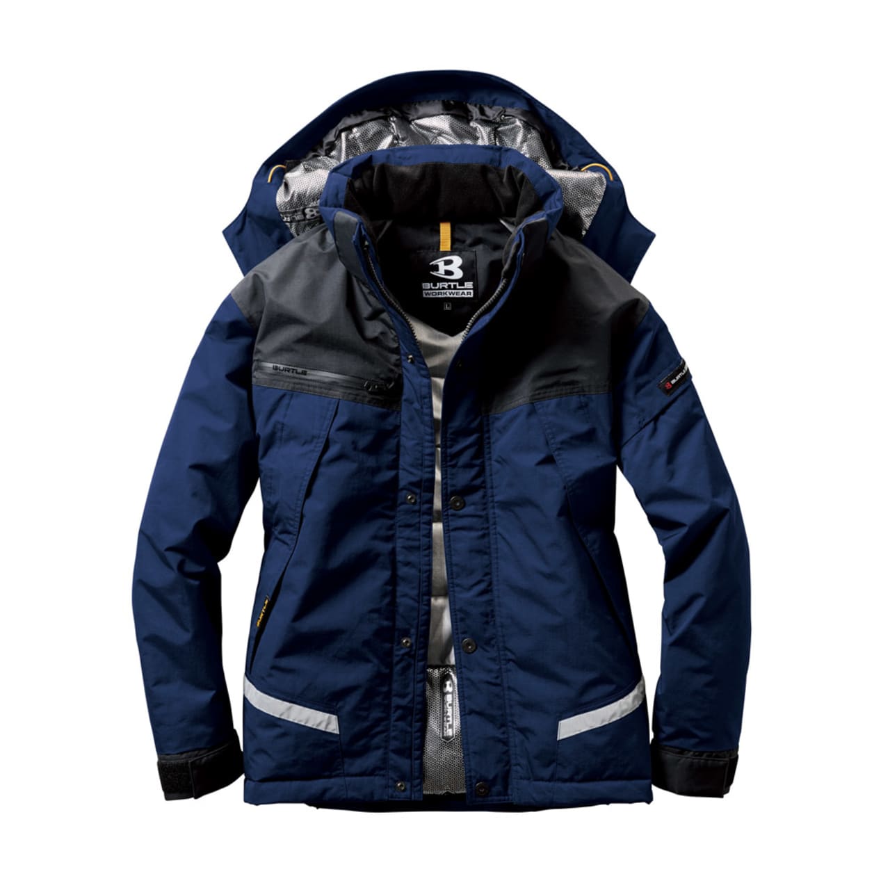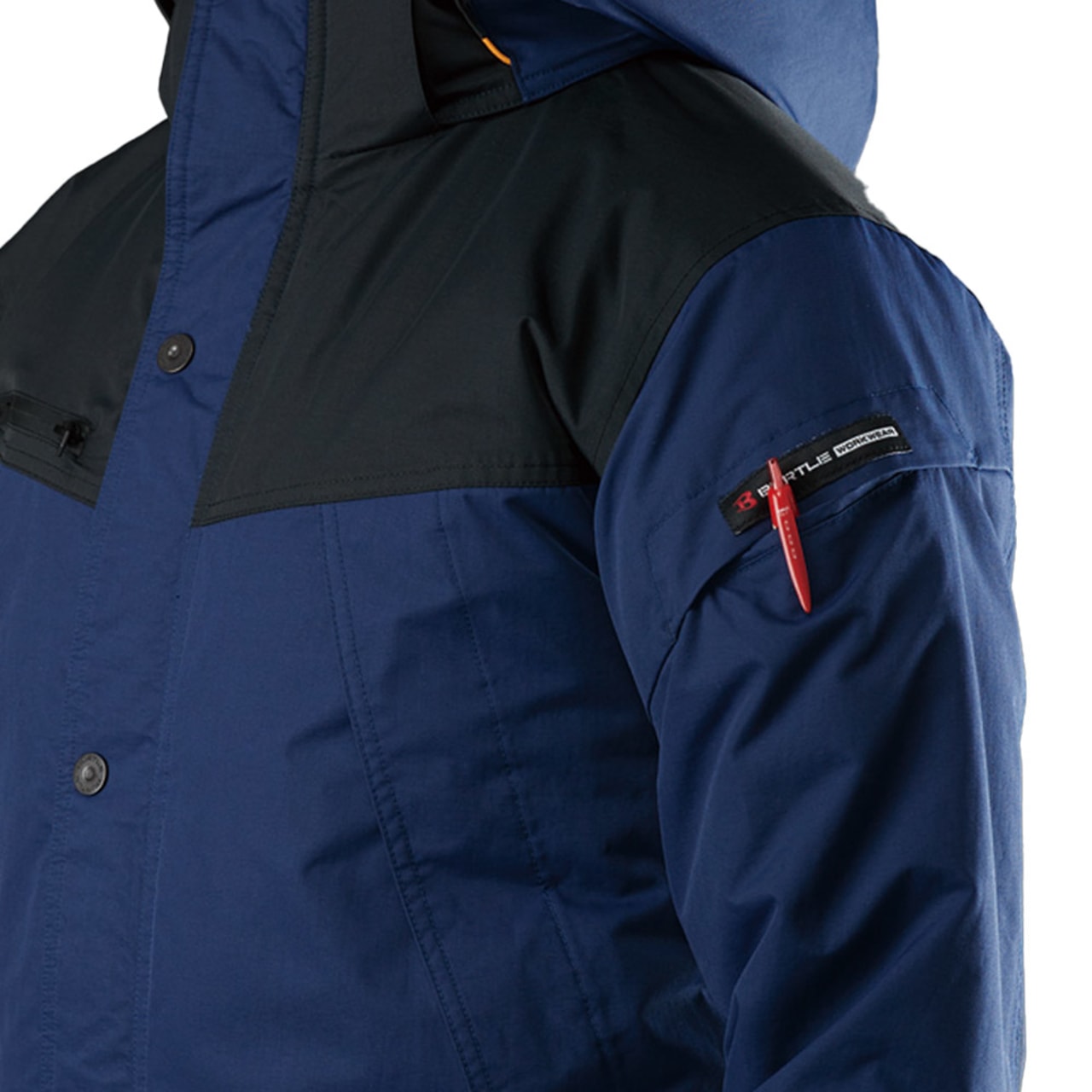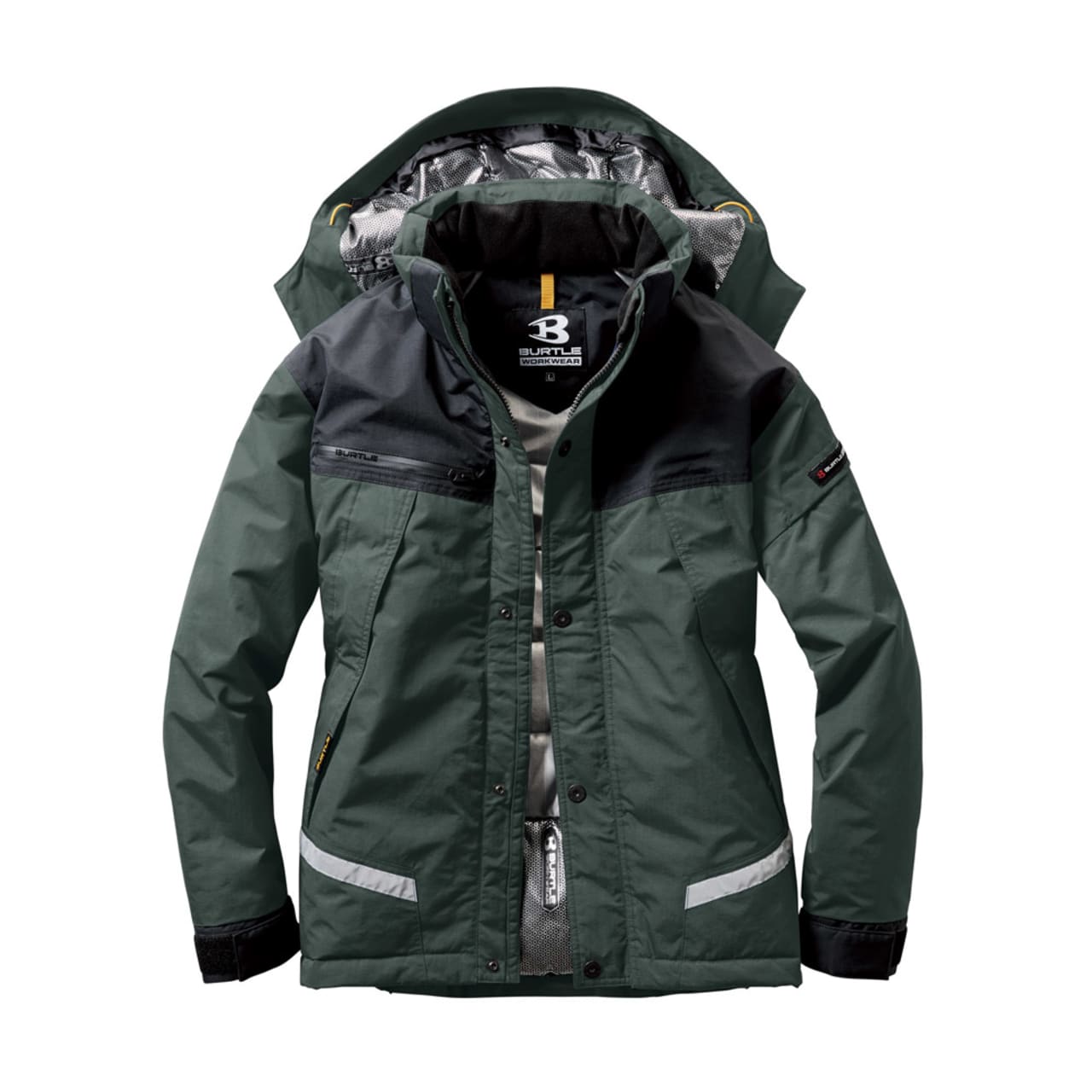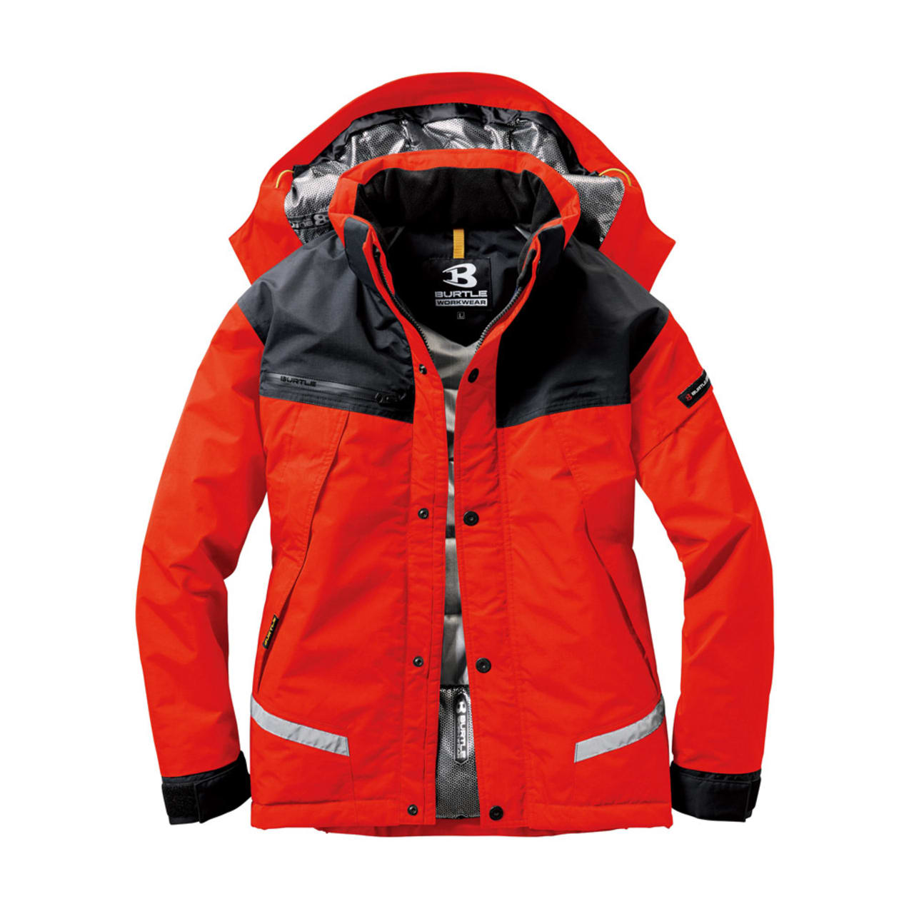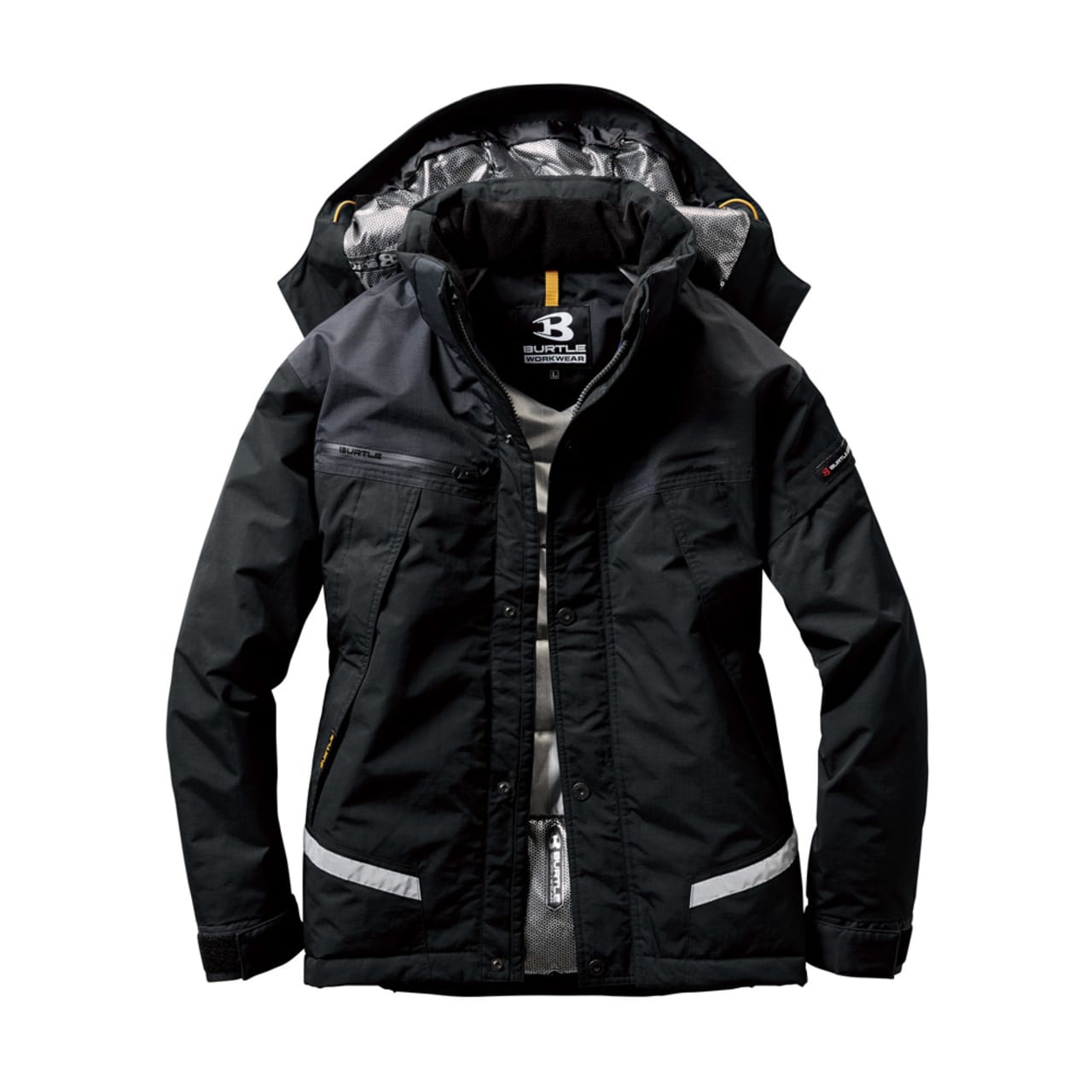 屋外作業中に急に雨が降ってきてウェアの内部までずぶ濡れになってしまった、そんな経験をした方もいるのではないでしょうか。耐水圧の低いウェアは雨に弱いため、ある程度の強い雨が降ってくるとウェア内部まで雨水が染み込んでしまいます。しかしこの防水防寒ジャケットであれば、耐水圧が10,000mmとなっているため、一般的な大雨が降ったとしても浸水しにくくなっています。加えて生地の縫い目にシームテープを取り付けることにより、より防水性を高めています。また、防水性だけでなく透湿性に優れているのもこのジャケットの魅力です。ジャケット内の水蒸気を放出しやすくすることにより、ムレを防ぎます。