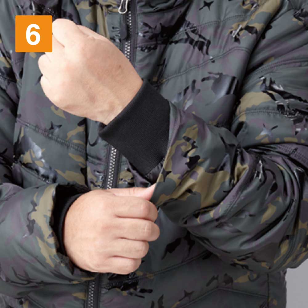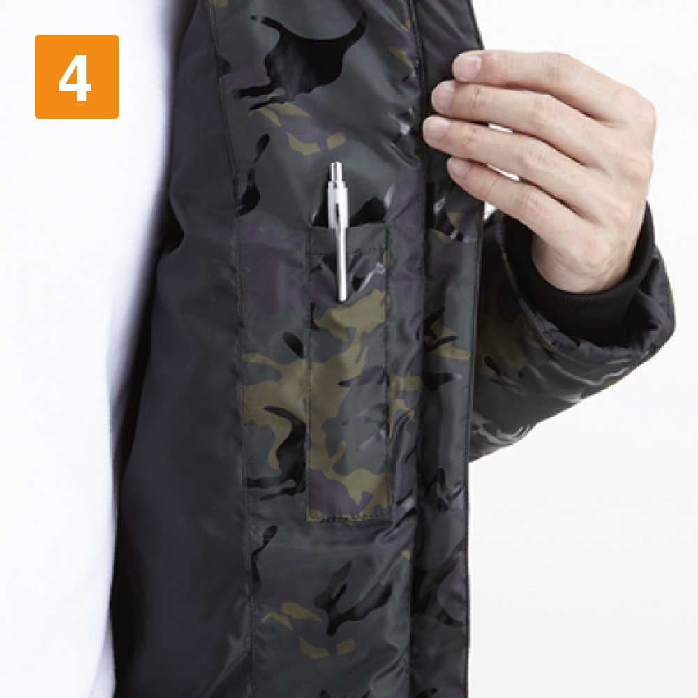 こちらの防寒ジャンパーの特徴は、なんと言っても軽さと収納が充実していることにあります。防寒ジャンパーは、ずっしりと重量を感じるものがありますが、このジャンパーは中綿120gと非常に軽量です。ふんわりと軽い着用感でありながらも、袖口内はジャージ仕様で仕上げているので、防寒性はバッチリ。また、収納が多いのもこの商品の特徴です。ポケットやペン差しが付いているこのジャンパーは、冬の作業を多角的にサポートしてくれるでしょう。
