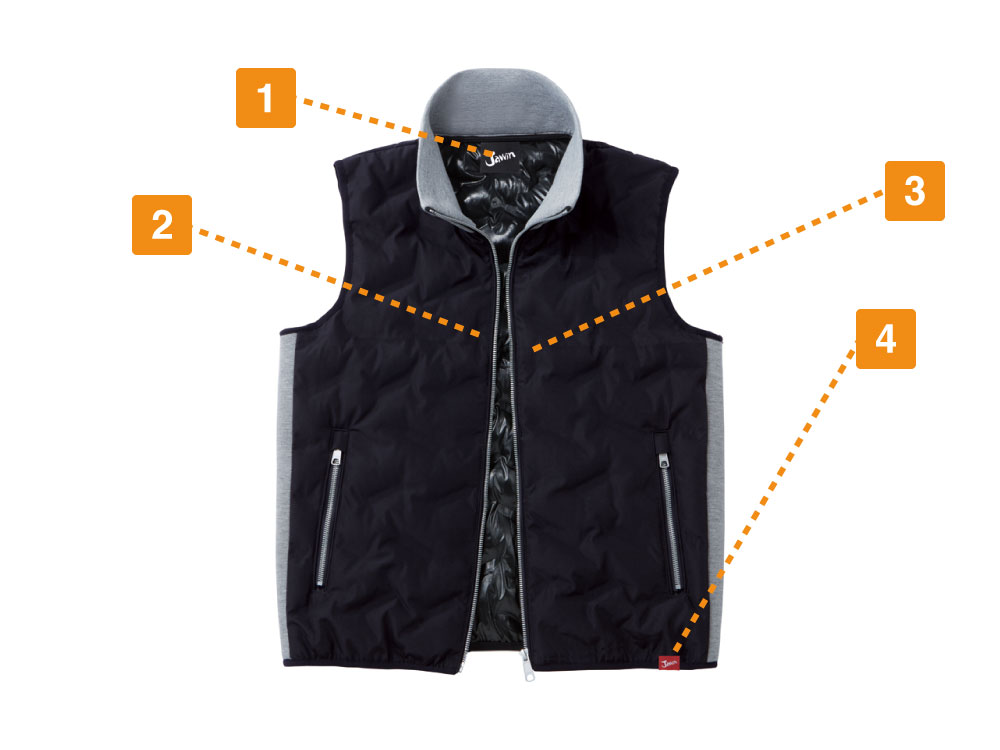 寒い冬場の作業には、中綿がしっかりと入ったジャンパーやベストが大活躍します。しかし、そのような防寒具は長年着ていると、生地表面のステッチがほつれてきて、中綿が飛び出してしまいます。しかし、この防寒ベストは、表面にステッチが出ないシームレス加工を施しているので、ステッチがほつれる心配がありません。また、中綿を160gとしっかり詰めているので、ベストでありながらも保温性は抜群です。収納面は右身頃内ポケット、左身頃内側ペン差し、全面両サイドのポケットをしつらえ、充実しています。作業に必要なアイテムが複数あっても、問題なく収納できるでしょう。