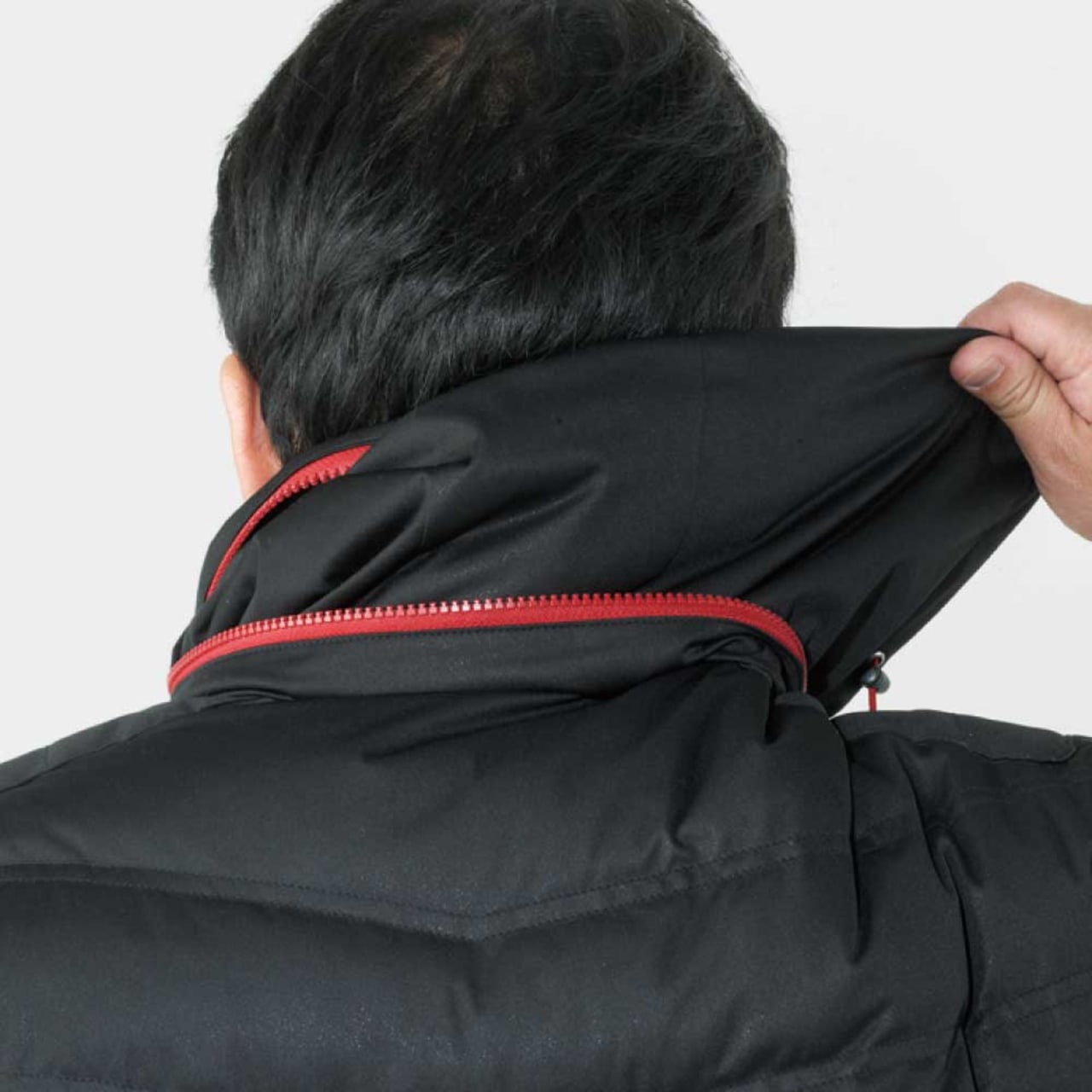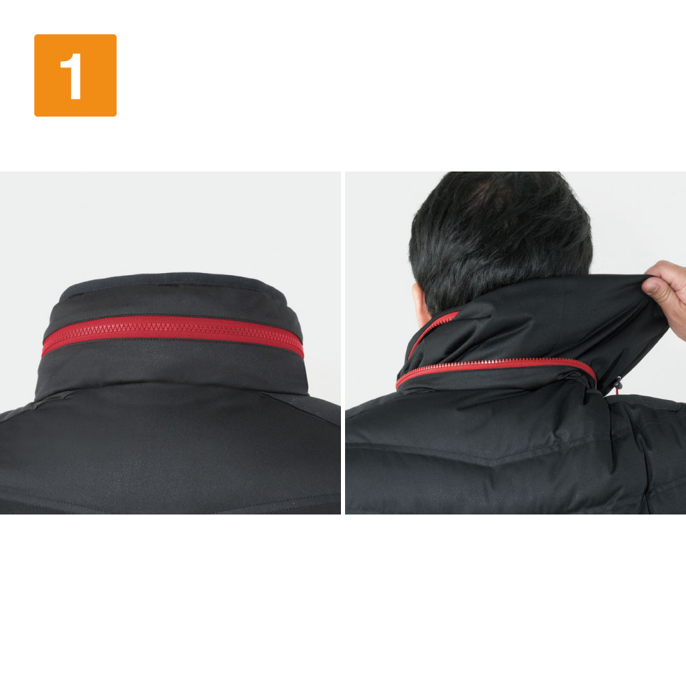 衿後ろファスナー(巻込式収納フード)