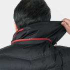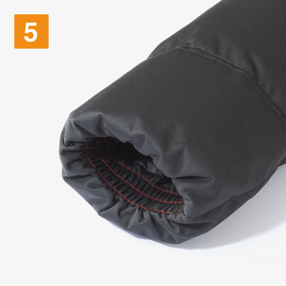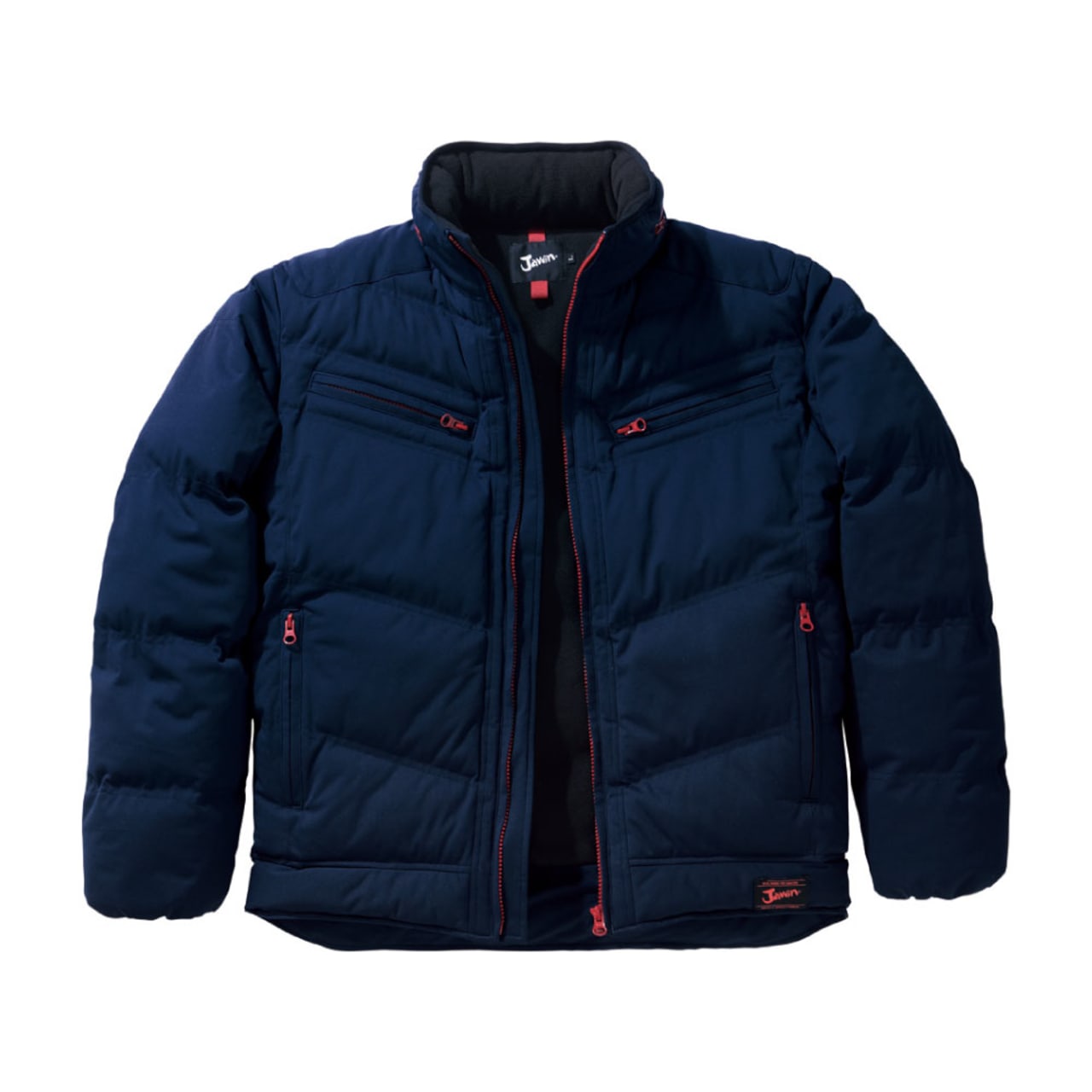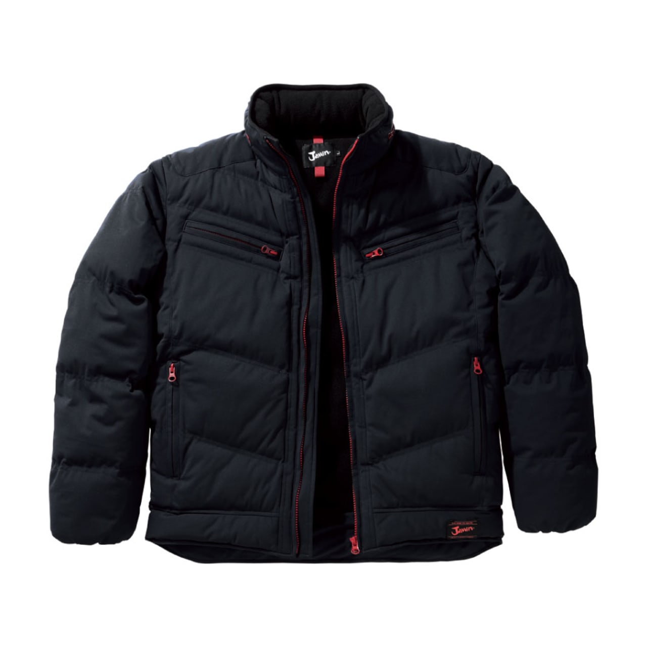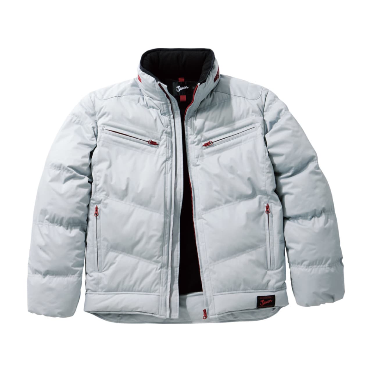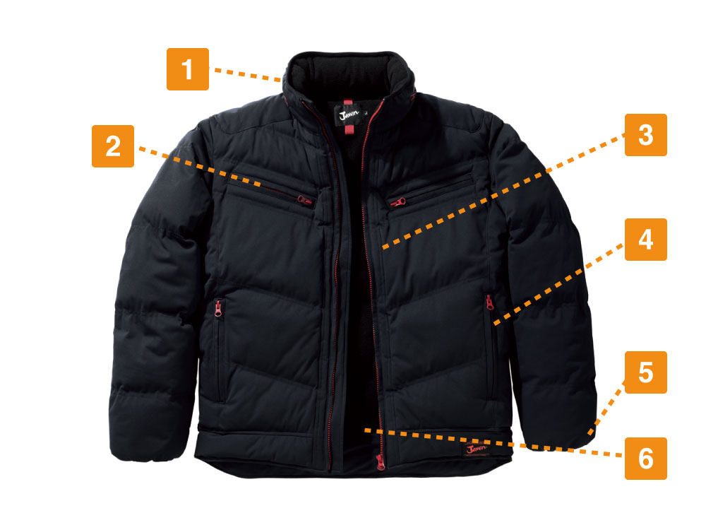 この防寒ジャンパー(フード付き)の特徴はやはり表面に伸縮性の高い素材を使用していることにあります。一般的な防寒具の中には防寒性を重視しすぎた結果、ごわついてしまい着心地の悪いものもありますが、この商品では、伸縮性のある生地を使用しているので、ワーカーの動きを妨げることなくサポートします。また、内ポケット、胸ファスナーポケット、脇ファスナーポケットと、収納面が充実しているのも特徴です。作業時に必要な小物を確実に収納できます。