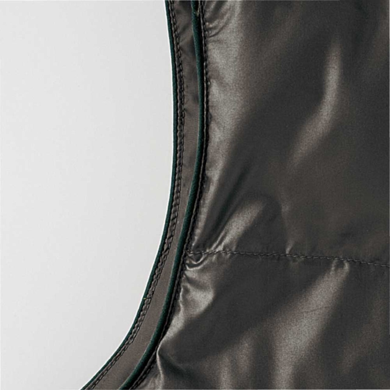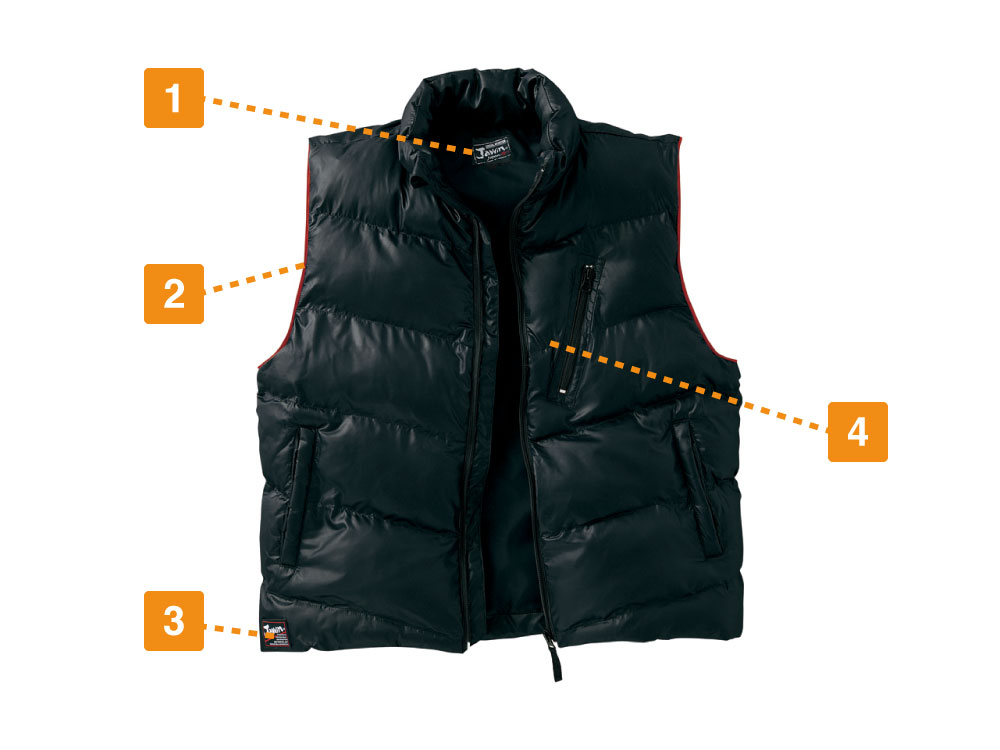 冷え込む冬場での作業には防寒着が欠かせないアイテムです。そんなときにおすすめしたいのがこの防寒ベストです。このベストの特徴は袖口が広く作られていること。一般的な防寒ベストはここまで袖口が広く作られていないので、分厚い冬用の作業着と合わせると肩周りがゴワゴワしてしまい作業効率が落ちてしまいます。しかしこの防寒ベストならゆったりとした肩周りのため、分厚い冬用の作業着に重ね着しても問題ありません。袖口にはパイピング加工が施されているので耐久性もバッチリ。また、内ポケット、左胸ポケット、両脇ポケットと収納部が充実しているのもポイントで、作業に必要な小物などをスッキリと収納することができます。