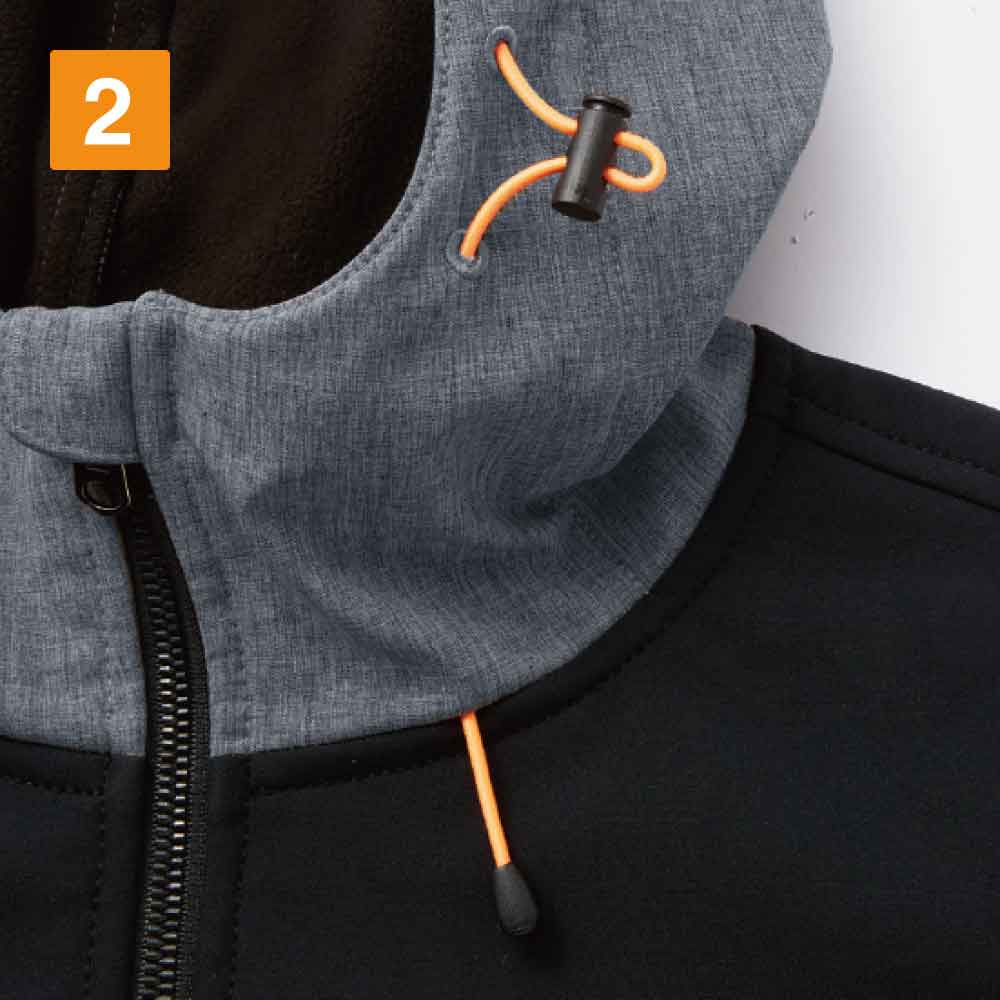 防風ストレッチパーカーの特徴は高い耐水圧にあります。このパーカーは耐水圧が5,000mmとなっていますが、これは大雨より少し弱い程度の雨なら問題なく撥水してくれる数字です。作業時はいつも晴れているわけではないので、防水性の高いウェアの導入は必須と言えます。また、生地のストレッチ性の高さにも注目です。しっかりと伸び縮みする生地をパーカーに使用しているので、ワーカーの動きを妨げることはありません。