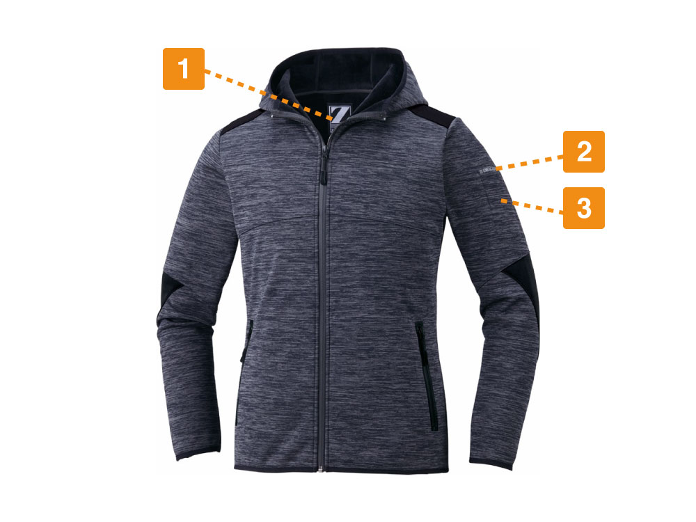 この防風ストレッチパーカーの特徴として高い防風性能があげられます。生地には三層構造のものを用いているので、風の冷たさをダイレクトに感じさせない仕様になっています。さらにストレッチ性の高い生地を使用することによって、ワーカーの幅広い動作をサポートしてくれるのがこのパーカーの特徴です。また、左袖にはペン差しを設けているのもポイント。軽い着心地なので着用シーンを選ばないのもこのパーカーの魅力と言えます。