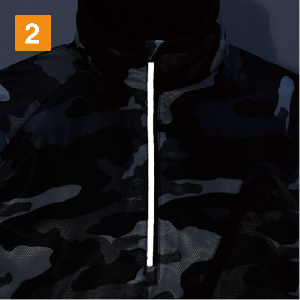 寒い時期に手放せない防寒着。でも、防寒性を重視するあまりゴワゴワした肌触りで着心地の良くない防寒着もあります。そんな防寒着にうんざりしている方におすすめしたいのがこちらのプルオーバーです。このプルオーバーは裏地にフリース素材を使用しているので、軽量かつ防寒性に優れています。通常防寒着はアウターとして着用するものですが、このプルオーバーは薄手なので、中間着としても着用できます。フリース素材を使用したプルオーバーを中間着として、さらに防寒性の高いアウターを着用すれば寒い中でも問題なく作業が進められます。また、反射パイピングや背中反射プリントを採用することにより、夜間作業の安全性も高めています。
