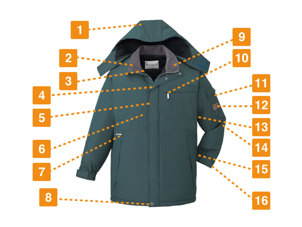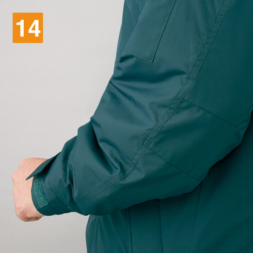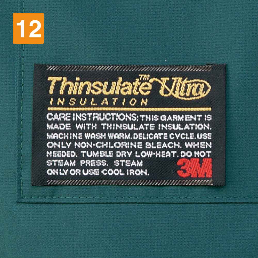 こちらの防水防寒コートには、シンサレートウルトラと呼ばれる中綿素材を使用。シンサレートウルトラ素材は、3M社が開発した中綿素材で、保温性に優れた特徴を持っています。極寒の過酷な環境下でも、それほど寒さを感じることなく、作業に集中できるでしょう。他にも、防寒作業服は販売されていますが、綿をふんだんに使った分厚いアイテムが多い傾向にあります。しかし、このシンサレートウルトラは、保温性だけでなく、軽量化にも力を入れており、薄くて軽いけれど、温かい特徴があります。そのため、中綿の厚みで動きを制約されることなく、スムーズに作業できるところもおすすめポイントです。