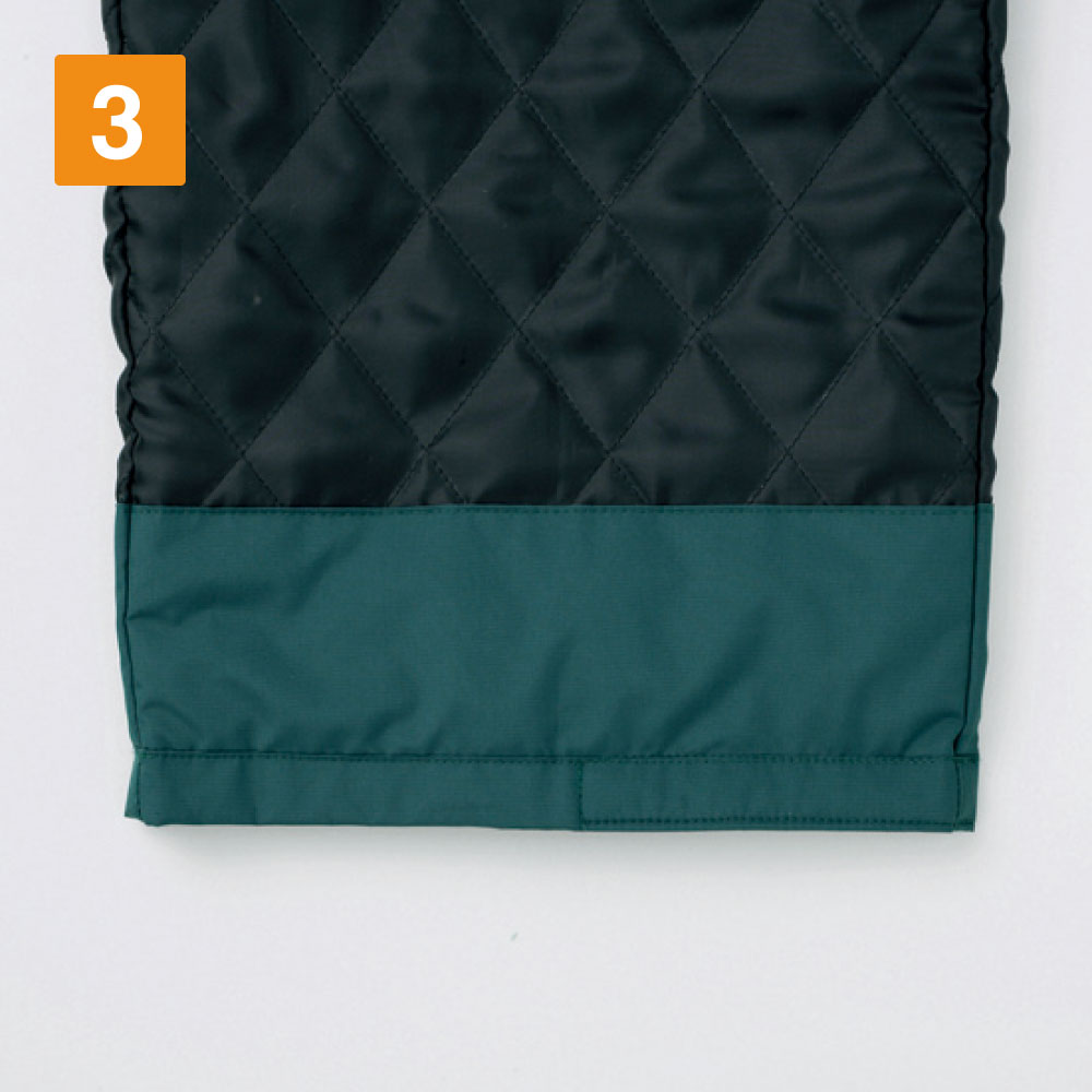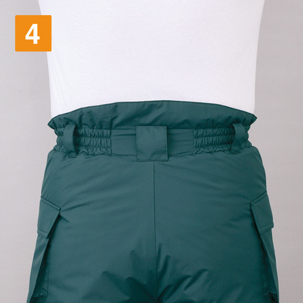 こちらのパンツは防水性にも優れており、高水圧は実に10000mmに達します。表面には撥水加工が施されているのも特徴です。屋外の作業の場合、雨が降ると中断せざるを得ないこともあるでしょう。また、突然のゲリラ豪雨のような雨が降ると、作業できなくなることもあるはずです。しかしこのパンツを着用して作業をすれば、多少の降雨でも引き続き作業を続行できるでしょう。さらに、裾の部分には折り返し仕様を採用しており、これにより、裾の部分が濡れて、ワーカーが不快な思いをすることがありません。