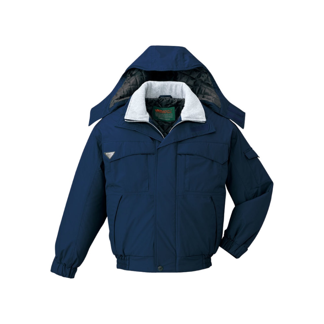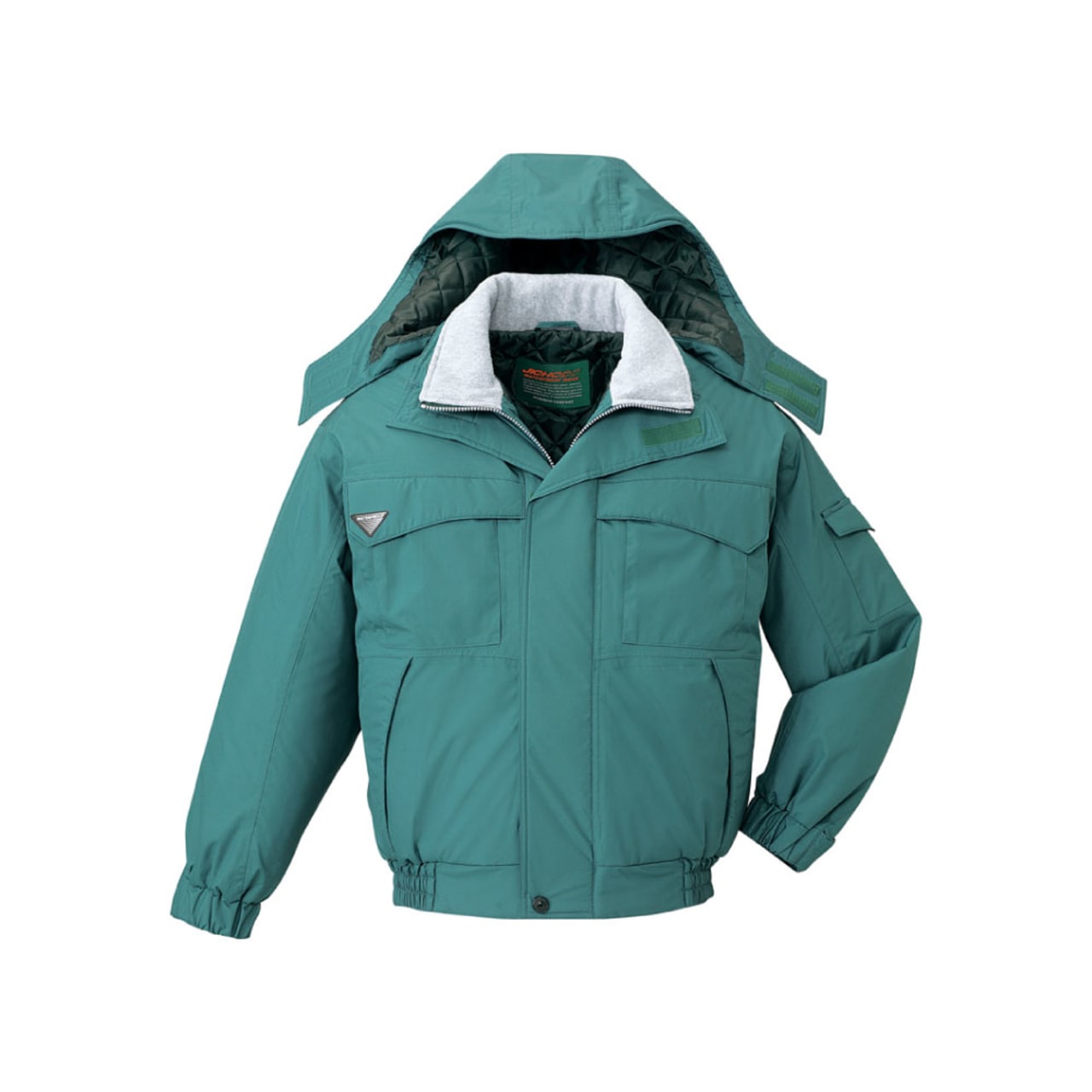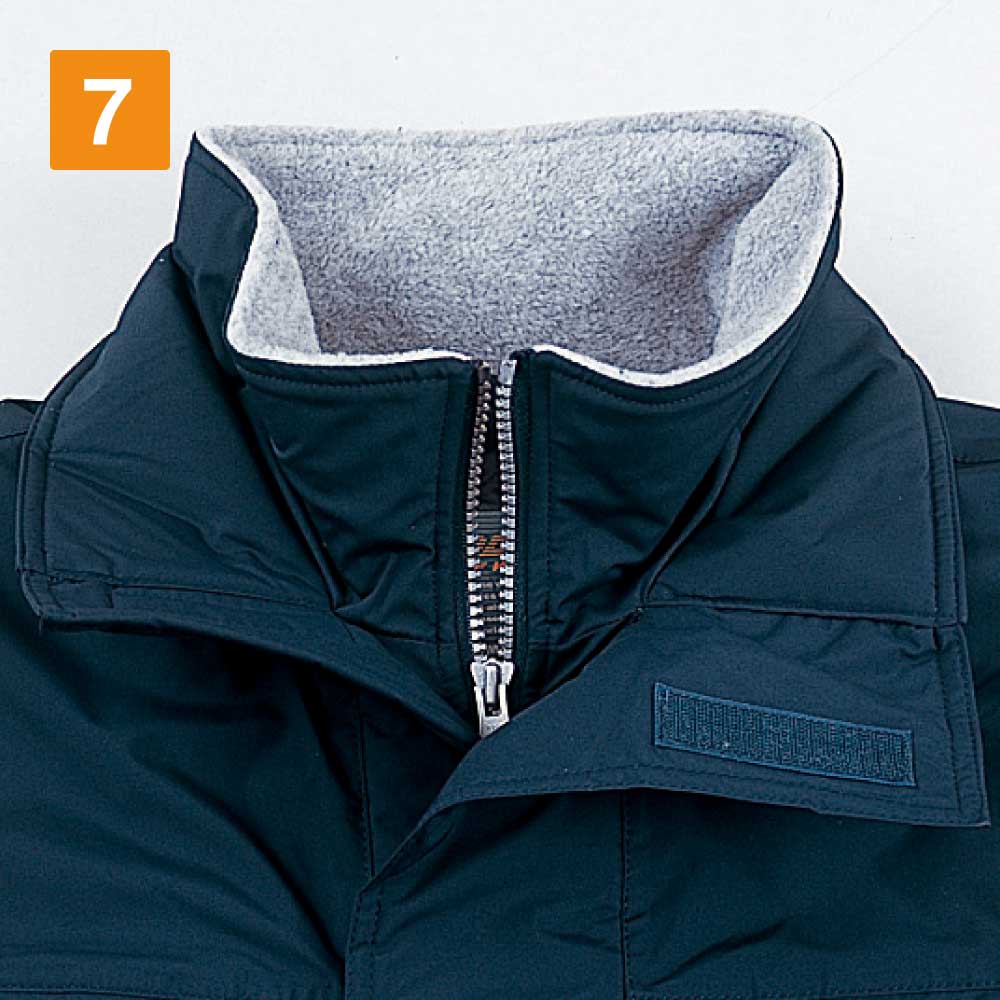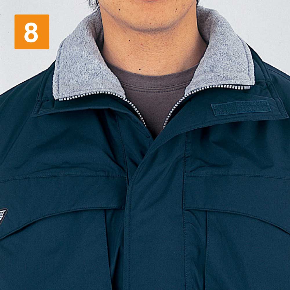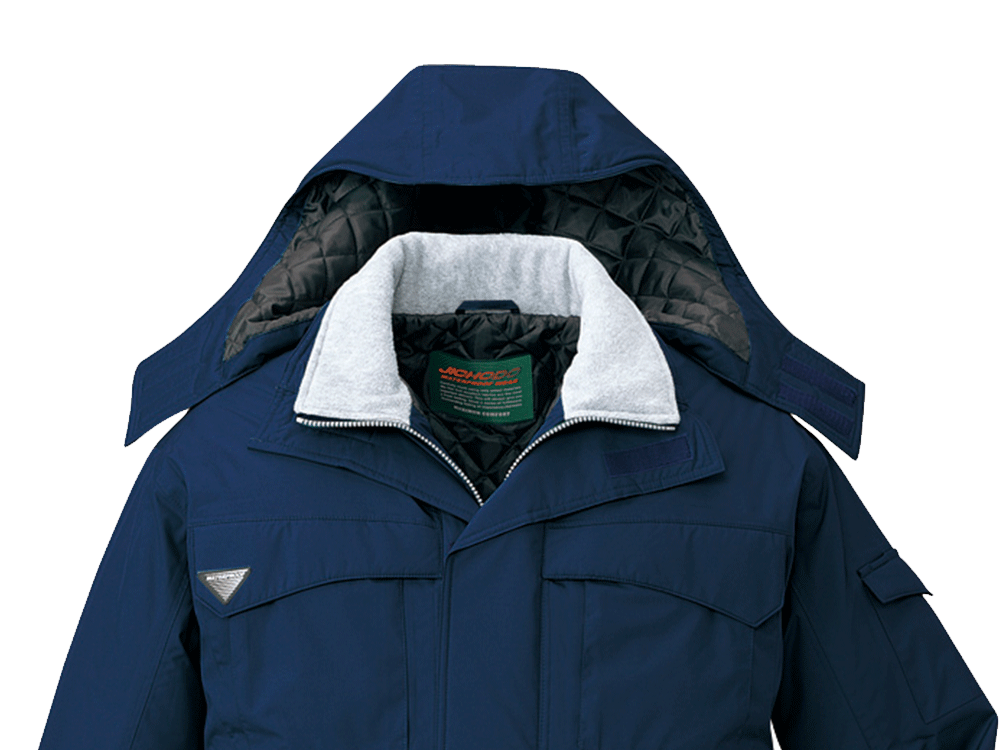秋冬のモデルということで、このエコ防水防寒ブルゾン(フード付き)は防寒性に優れています。胴裏にキルト地を使っていますし、二重衿仕様によって首元が冷えるような心配もありません。ただ長時間体を動かしていると、防寒着を着ながらの作業だと汗をかくこともあり得ます。こちらのブルゾンは4000g/㎡の透湿度を誇り、汗をかいても蒸れる心配はありません。高い透湿度を誇り、防水性がありながらも、汗によるべたつきを防げます。いつまでもサラサラと快適な着心地を維持できるのはおすすめポイントです。