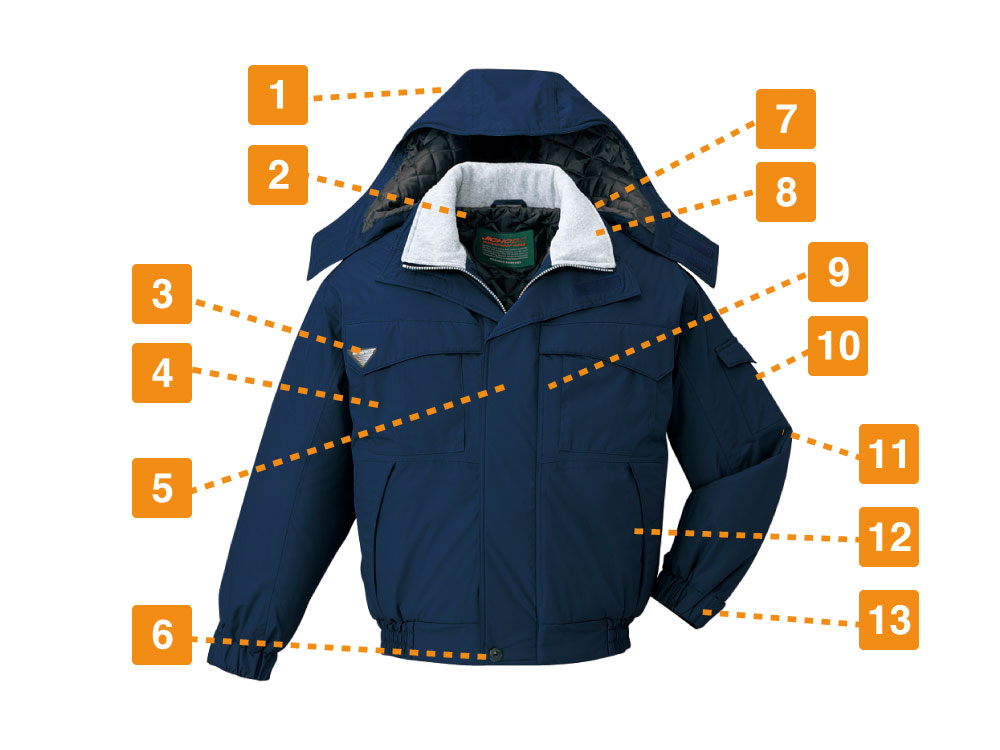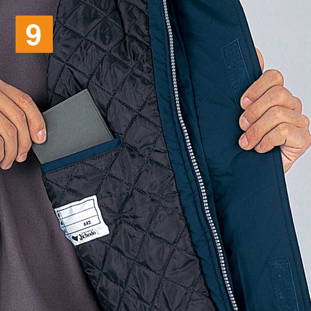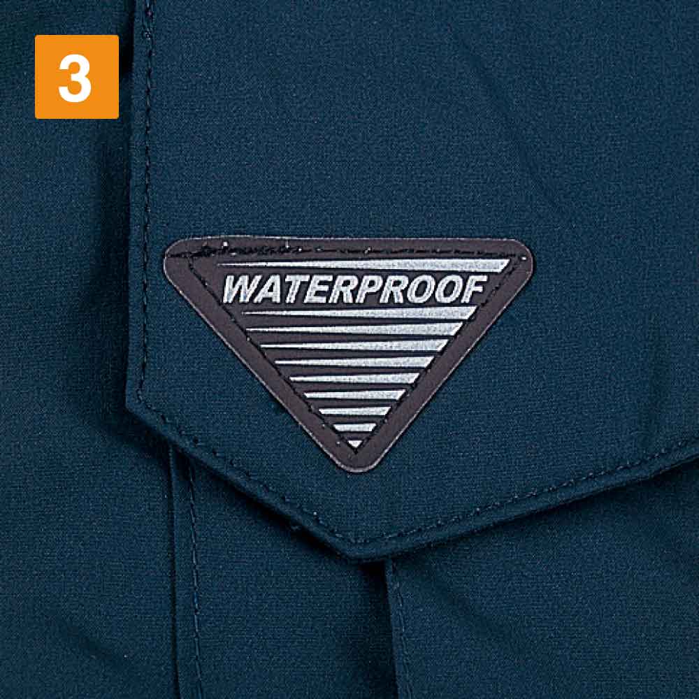 秋や冬の屋外の作業で、冷たい雨や雪に降られると現場の作業員にとって肉体的に厳しいです。このような厳しい環境でも作業員の身を守るために、このブルゾンには防水性にも優れています。耐水圧2000mmということで、雨や雪を防いでくれます。加えてこのエコ防水防寒ブルゾン(フード付き)には、撥水加工が施されています。雨水をしっかり表面ではじき、内部にしみこんでくるのを防ぐので、多少の雨や雪の中でも作業は続けられます。雨や雪による工期延長をできるだけ防ぎたいという業者さんにはおすすめです。