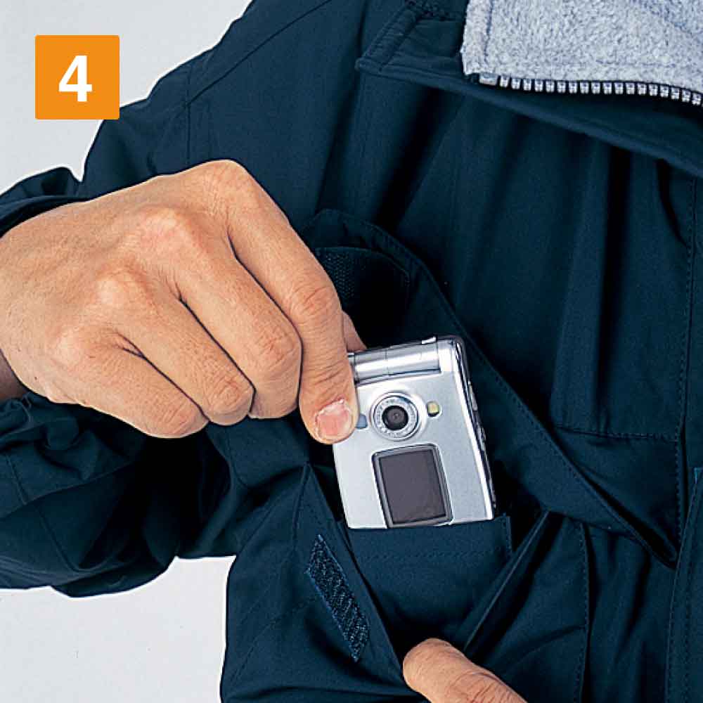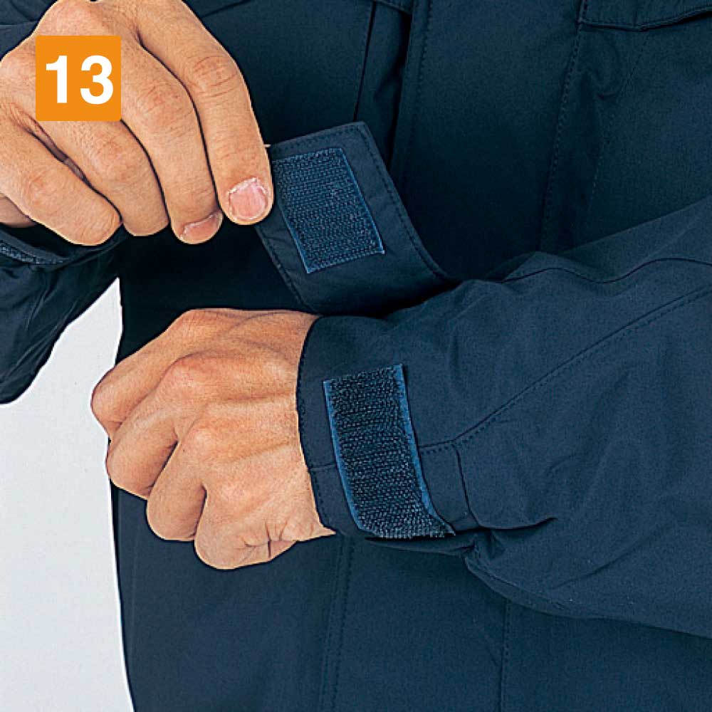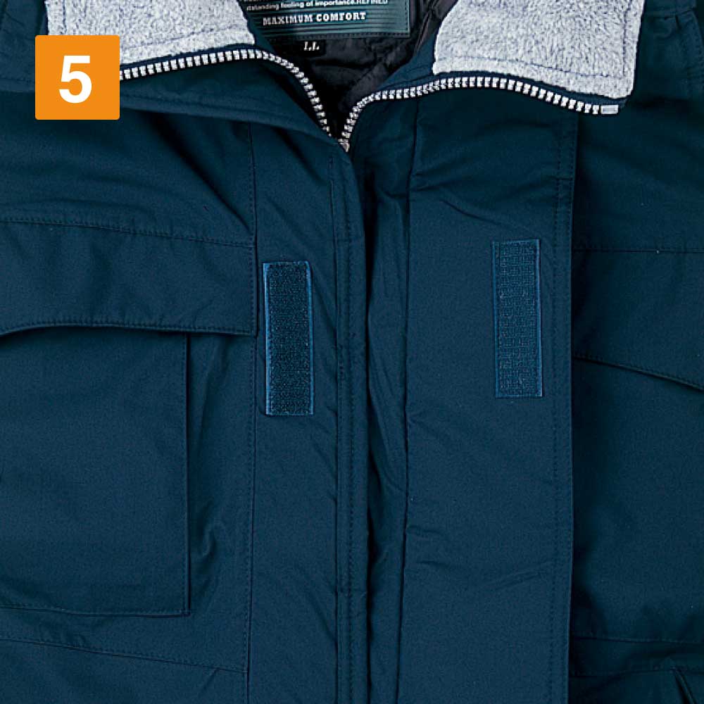 防寒着を着て長時間作業をしていると寒さの厳しい環境下であっても、どうしても汗をかいてきます。そのままにしていると汗によるべたつきや汗の臭いが気になってくるでしょう。しかしこのエコ防水防寒コート(フード付き)を着用していれば、いつまでもサラサラした着心地をキープできます。というのも高い透湿度を誇るからです。こちらのコートは4000g/㎡/24hを記録しています。高い透湿度で、コート内部の湿度を逃がし快適な環境で作業できます。