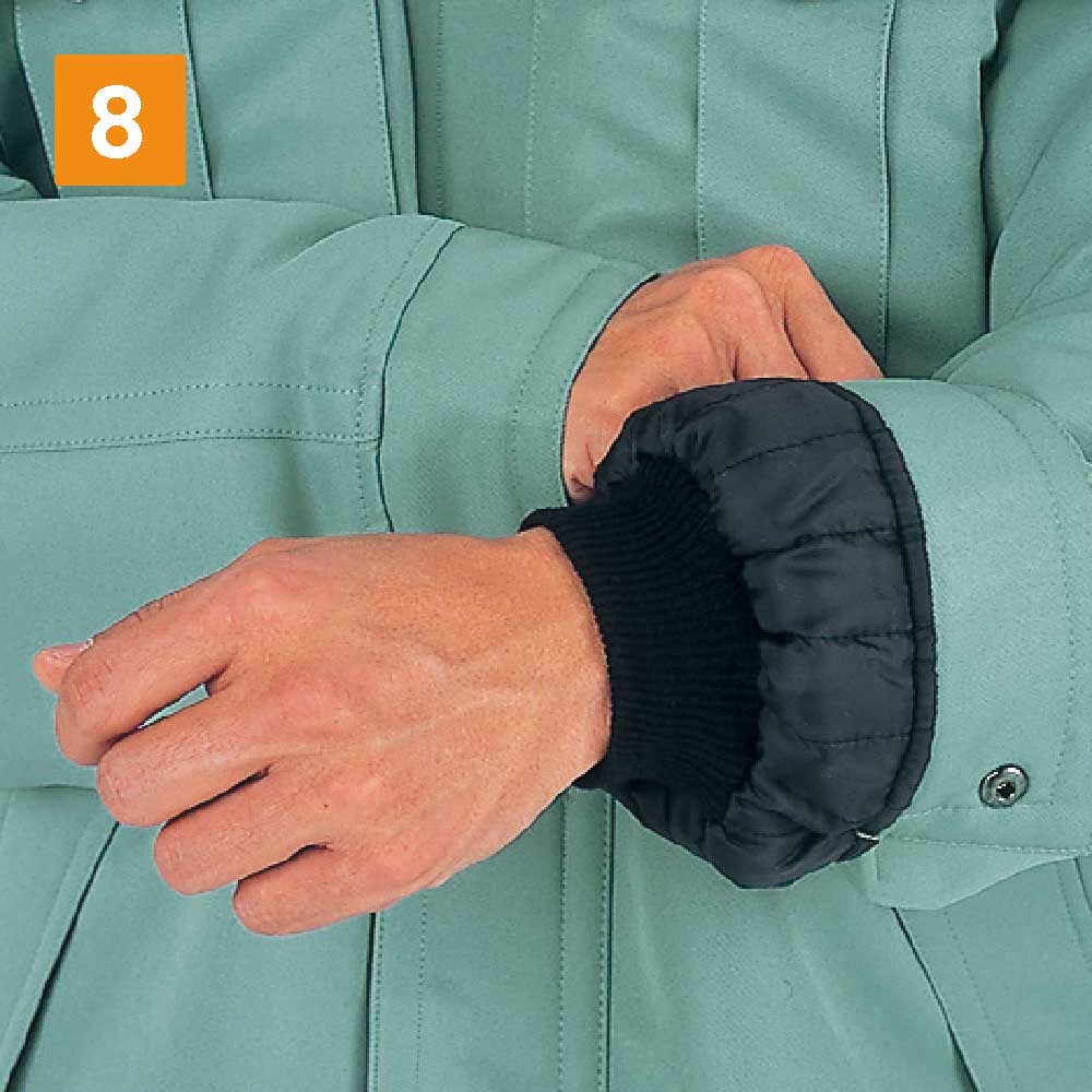 電子部品や火気を扱う現場において、静電気の発生は厳禁です。乾燥しやすい秋冬シーズンには、どうしても作業着に静電気が帯電しやすく、不慮の事故に発展するケースも少なくありません。そこでおすすめしたいのが、こちらのエコ防寒ブルゾンです。帯電防止素材を使用しており、静電気が発生しやすいシーズンにおいても帯電を回避できます。また、表面に撥水加工を施し、雨や雪に強い設計となっているのも特徴のひとつです。雨や雪に強く、なおかつワーカーの体温も逃がさない優れた防寒ブルゾンに仕上がっています。