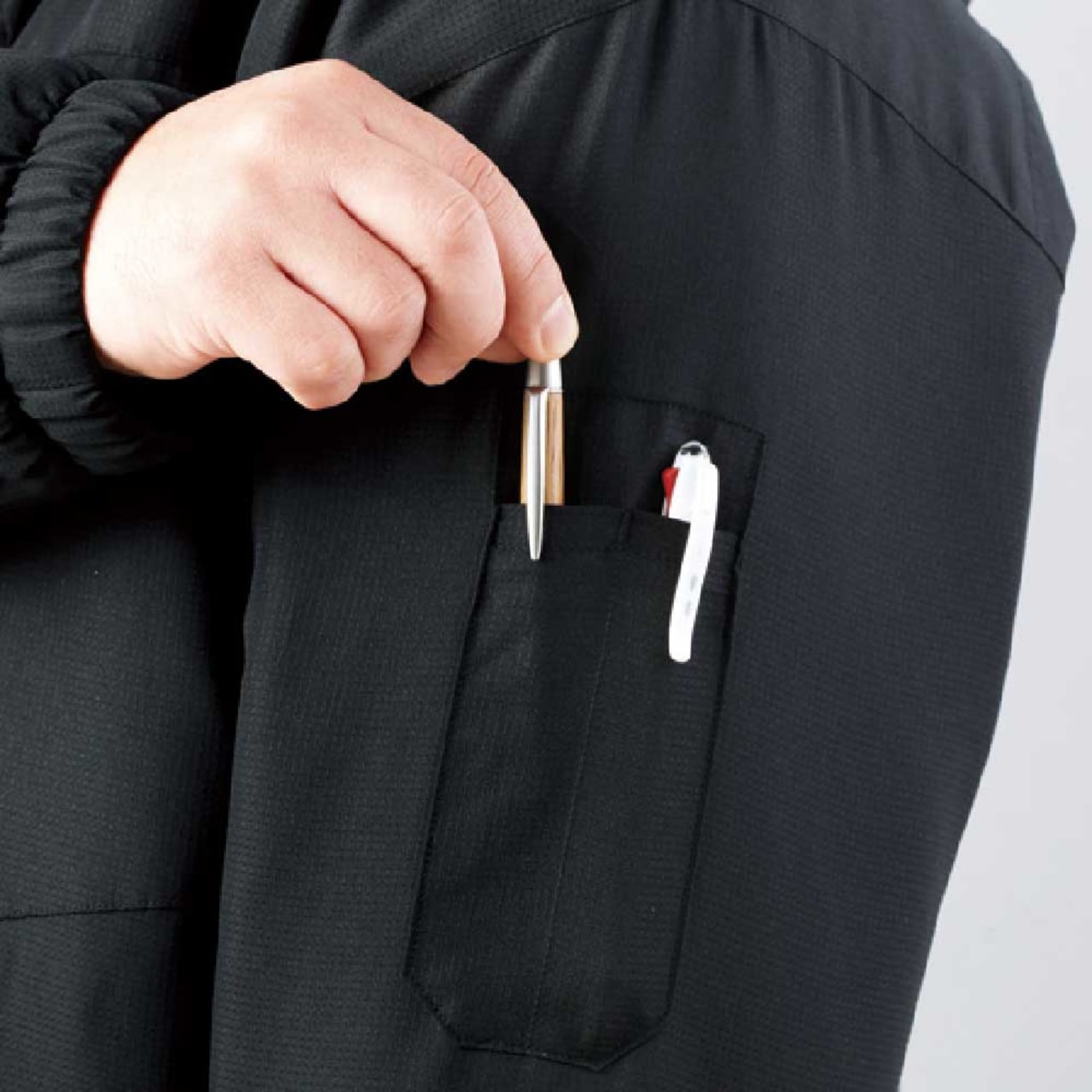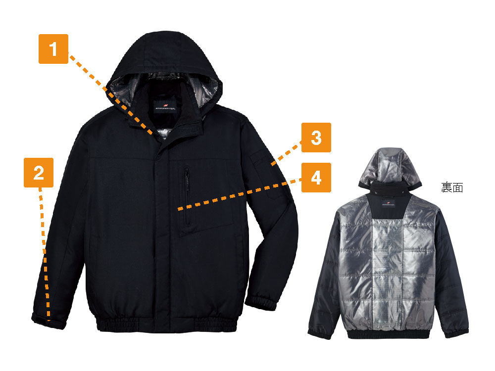 裏地にアルミプリント加工を施してあることが、最大の特徴です。アルミプリント加工を施すことで、熱を外に逃がさずワーカーの体温を下げません。まるで魔法瓶のような効果を期待できるブルゾンです。冷え込みの激しい時期の屋外作業においても、快適なコンディションを維持できます。防寒性を高めたワークウェアは重量を増す傾向がありますが、こちらのアイテムならその心配もありません。高い防寒性と保温性を実現しつつも、軽量な仕上がりです。ワーカーの体にかかる負担も軽減でき、パフォーマンスの低下を防げます。