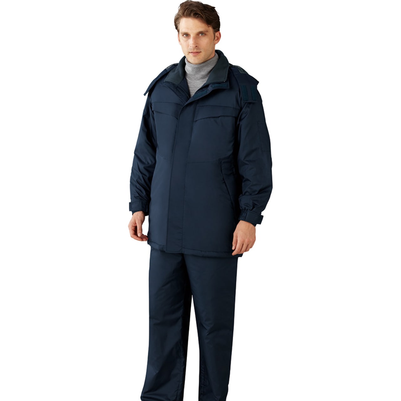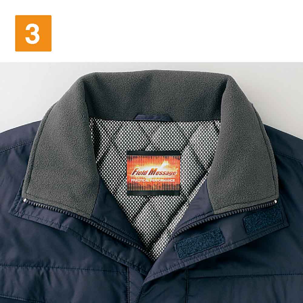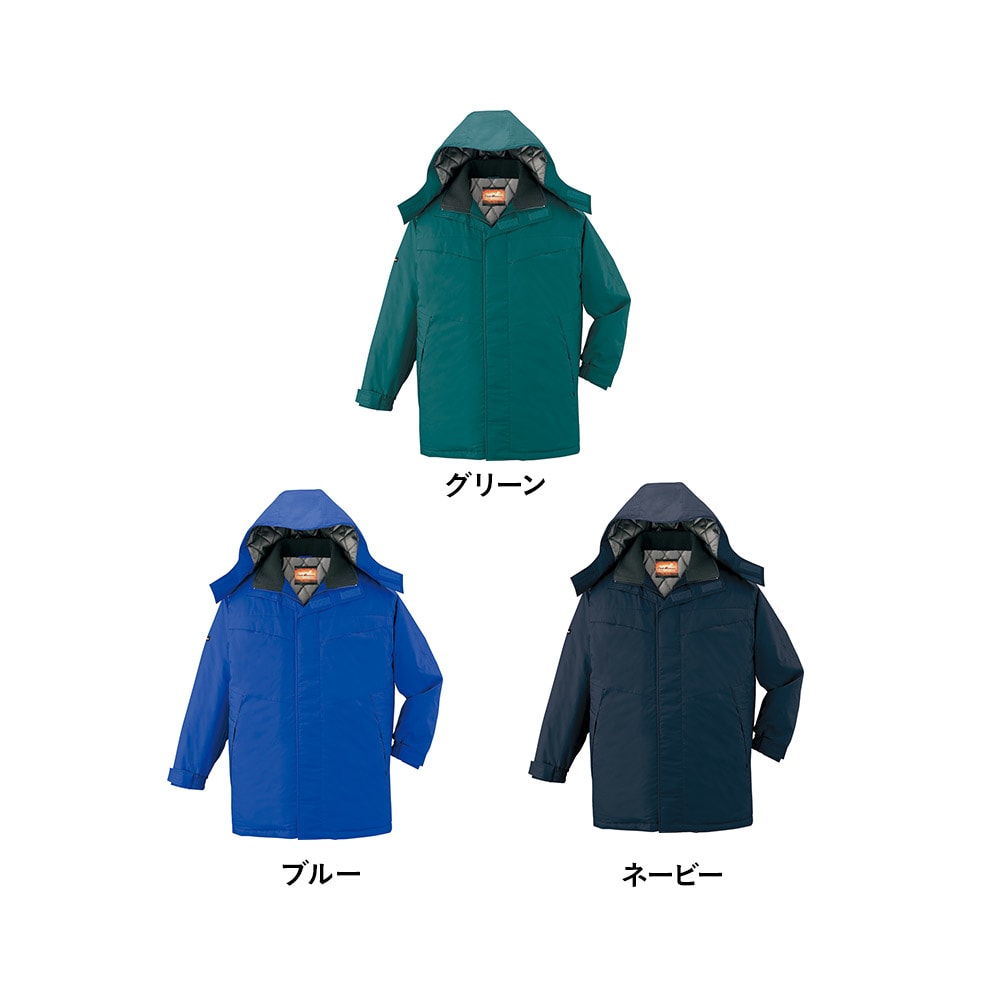 保温性の高い素材として、保温シートや保冷パックなどにも採用されているアルミ。そのアルミマテリアルを裏地にラミネートすることで、高い保温性を実現した防寒コートです。上半身すべてをしっかりカバーでき、寒さの厳しい冬場の屋外作業においてもワーカーをサポートしてくれます。作業着としてベーシックなカラーラインナップのため、どの色を選んでもあらゆる現場にマッチします。悪目立ちもせず、同シリーズのワークパンツとの相性も抜群です。