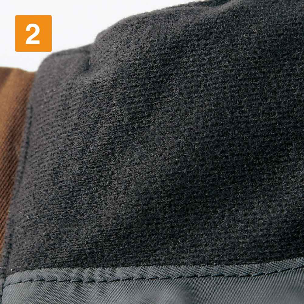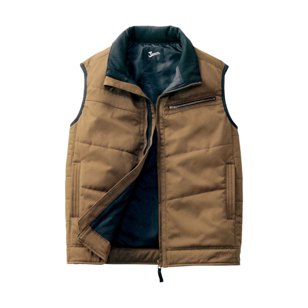 冬場での作業は防寒具が欠かせませんが、あまりの寒さに防寒具を着ていても凍える経験をした方もいるでしょう。そんな方におすすめしたいのがこちらの防寒ベストです。このベストは特殊な生地Thermolite PLUSを使用しています。この生地はまるで魔法瓶のような保温効果を持つため、一度体温が上がればなかなか熱が逃げていきません。また、襟裏部分には起毛トリコットを使用しているので、首周りの暖かさもしっかりとキープしてくれます。また、このベストの魅力は保温性だけではありません。内ポケット、左胸ポケット、両脇ポケットと収納が充実。仕事に必要な小物をしっかり収納できます。