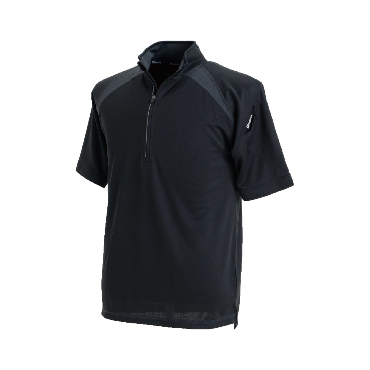 着る方をアクティブな印象にしてくれる洗練されたウェアです。肩に入ったラインが全体を引き締め、さりげないアクセントに。スタンドカラーデザインによりかっちりした雰囲気を演出しつつ、首周りの汗もしっかりと吸収します。ハーフジップデザインを採用しているので着脱しやすく、毎日の着用でもストレスを感じさせません。本体のドライメッシュ生地により、常に蒸れた空気を放出して汗をかいても着心地は抜群。さらに、縫い目を平らに仕上げたフラットシーマー仕様が、肌への不快感を低減してくれます。
