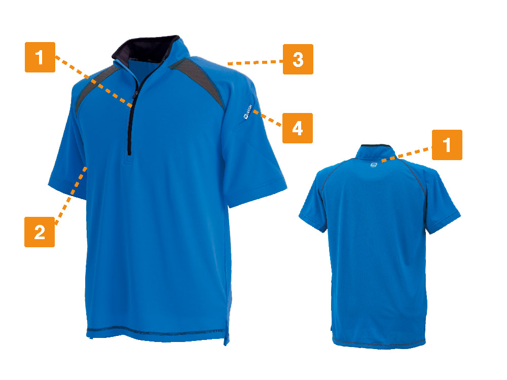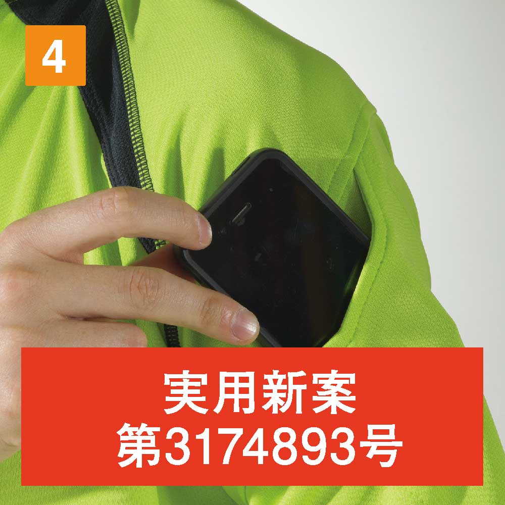 | □脇部分消臭テープ □左袖部分マルチスリーブポケット |