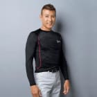 生地の持つ機能面でも選ばれている一着です。着用時に心地よいひんやり感のある接触冷感素材を使用。さらにドライな肌触りで、汗をかいても一日中さわやかでさらりとした着心地が持続します。また生地はストレッチ性能を有し、フィットしながらも身体の動きにどこまでも追従してくれるのもポイント。さらに、日常で生じる不快な臭いを低減する機能性素材だから長時間着用でも臭いを抑え、抗菌効果により根本から臭いの発生を抑えます。