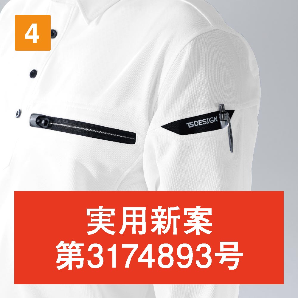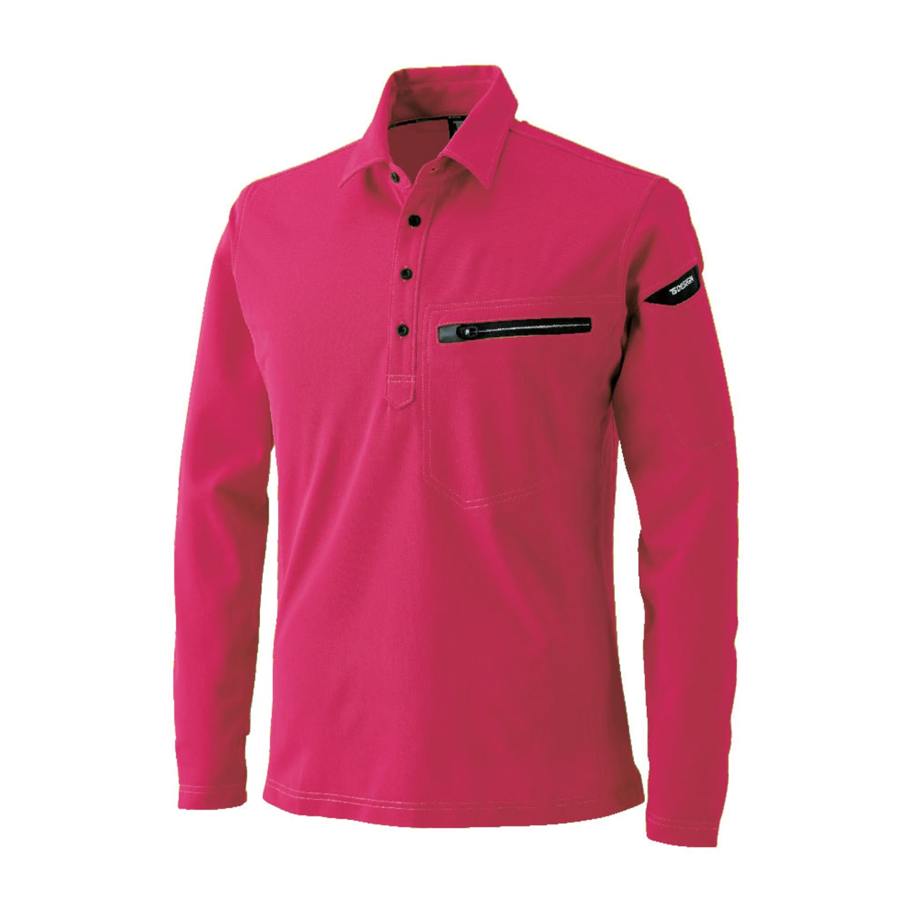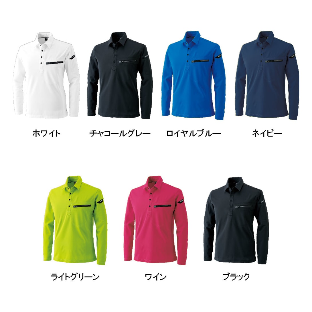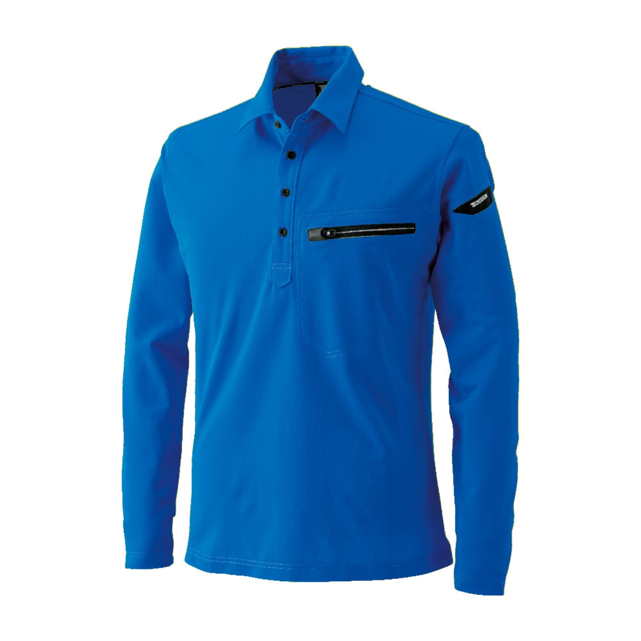 本体に使用されているストレッチエアーリップ生地の持つ機能性が光る一着。生地は製品制電 JIS T-8118に適合した高機能素材です。可燃性ガスを扱う現場など、静電気の発生がクリティカルな危険に繋がる環境でも着用でき、安全性アップに寄与しています。また、生地の持つ形態安定性能によって型崩れしにくいのもポイント。毎日のヘビーユースや洗濯でもへたりにくいので、ユニフォームとしてのコストパフォーマンスも高いウェアです。収納面では、胸ポケット開口部にポロシャツとしては珍しいファスナーを配置。物が落ちにくいので体勢を問わず作業が可能です。