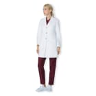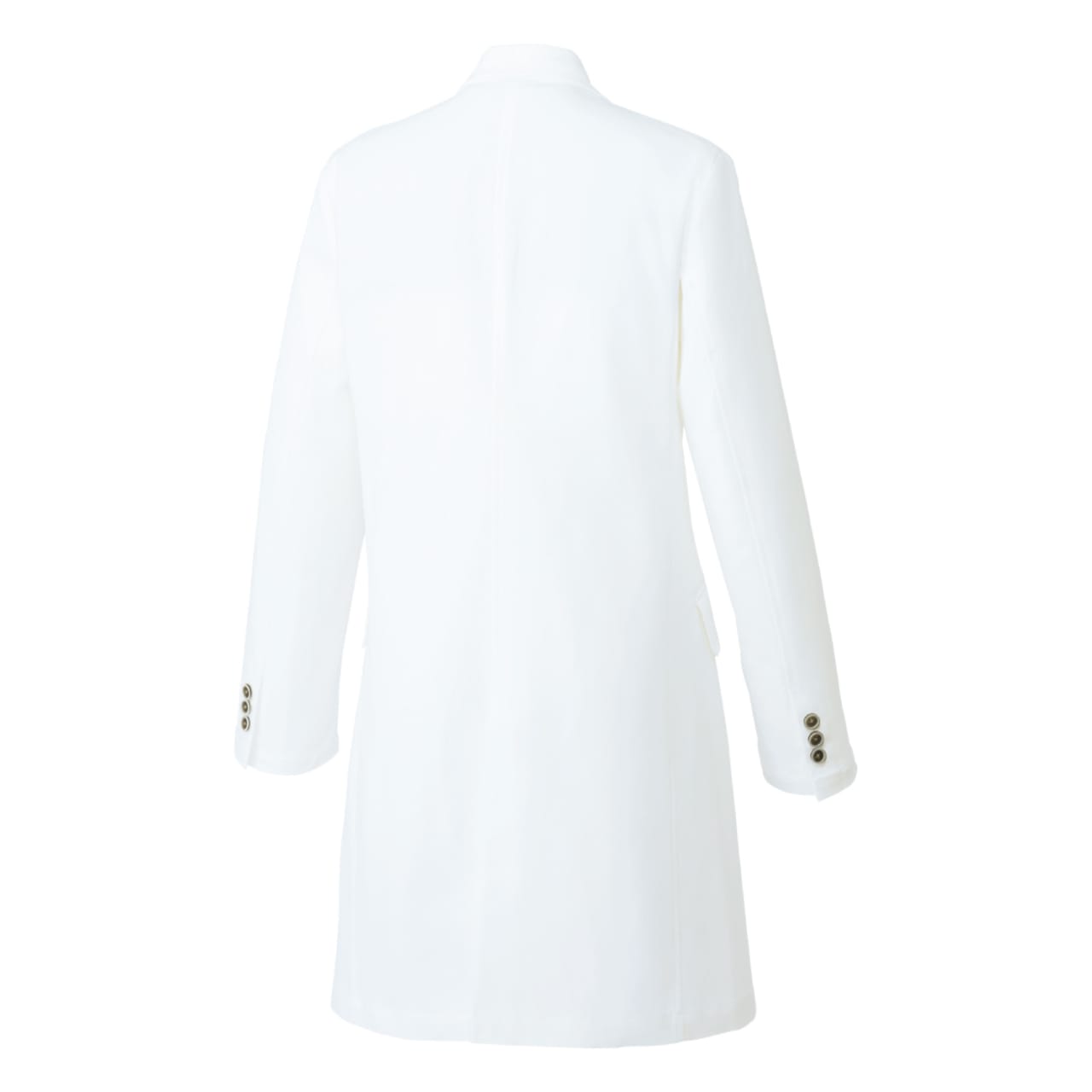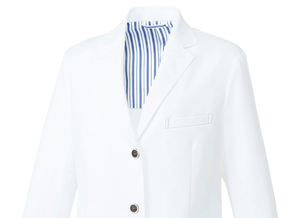 洗練された姿を演出するドクターコート。医療現場に求められる動きやすさにもこだわりをもって設計されています。丈は動きやすさを考えた太もも丈。脚の動きを妨げないので、軽快なフットワークを実現します。また、裾の後ろ側にはスリットが設けられているので、脚の前後の可動域を広げ、大きな動きもストレスを感じさせません。衛生面でも優れており、高い制菌性能加工を証明するSEKマークを取得しています。衛生面で高い水準が求められる環境でも、安全に着用いただけるコートです。