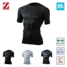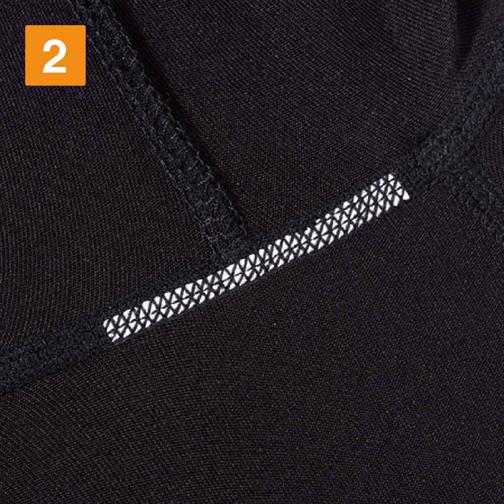 ストレッチ性のある生地の持つ抜群の機能性が魅力の一着です。ひやりとした肌触りが気持ちいい接触冷感素材であることに加え、吸汗・速乾性能を備えた素材を使用しています。汗をかくお仕事でも、べたつかず冷えにくく、すぐにからりとした着用感が戻るのがポイント。長時間の着用も心地いいウェアに仕上がっています。さらに汗などの不快な臭いをカットする消臭性能、臭いの原因を根本から抑える抗菌性能により、清潔で爽やかな着心地をプラス。両肩と両脇に消臭と抗菌性能のあるテープを配置することで、より効果を高める工夫もなされています。