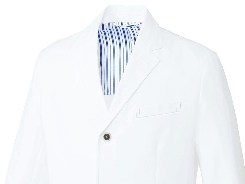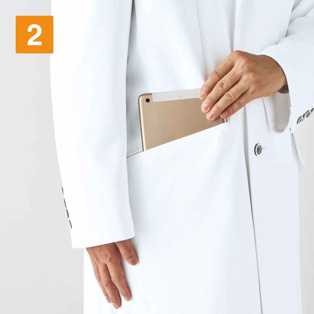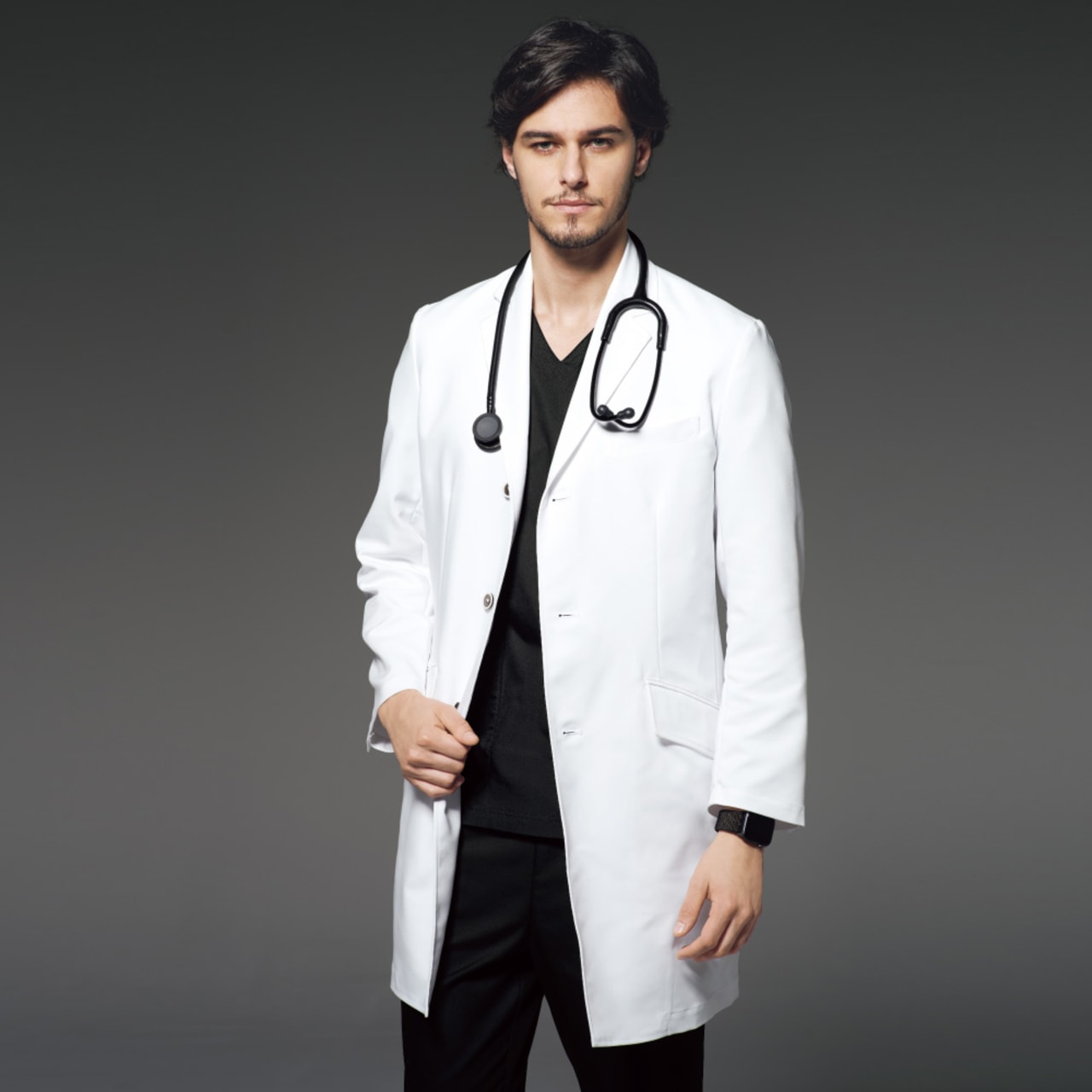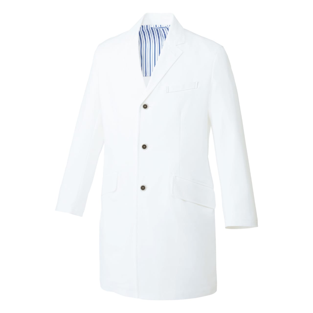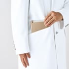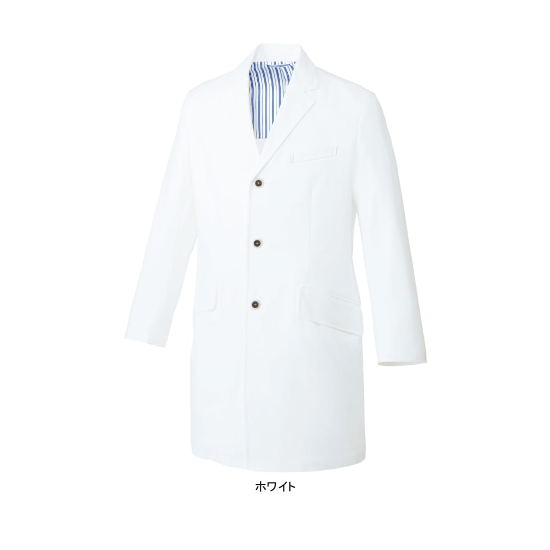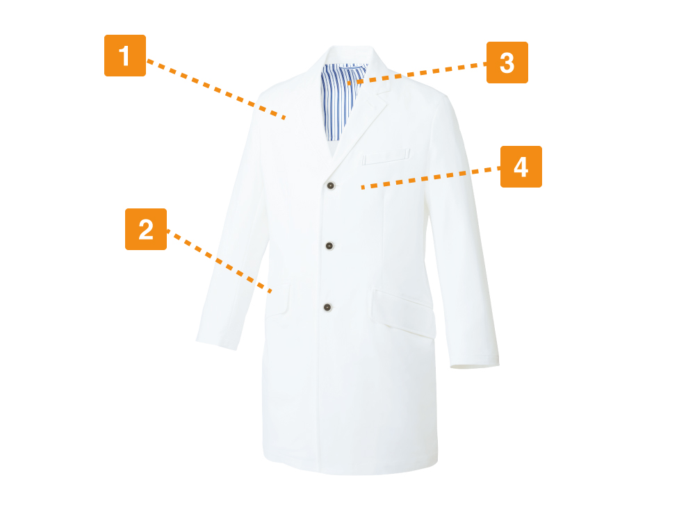 ベーシックながら洗練された印象を作るデザインコート。スタイリッシュなだけでなく、医療現場での活躍を支える機能面も充実しています。太もも丈で動きやすく、機動性に優れており、緊急性の高い職場での着用にもおすすめです。さらに、裾の後ろに大きくスリットが設けられており、大きな脚の動きを妨げないのもポイント。また、医療現場に求められる衛生面でも配慮がなされており、高い制菌性能加工の基準をクリアしたSEKマークを取得しています。衛生的にデリケートな現場でも、安全に着用いただけるコートです。