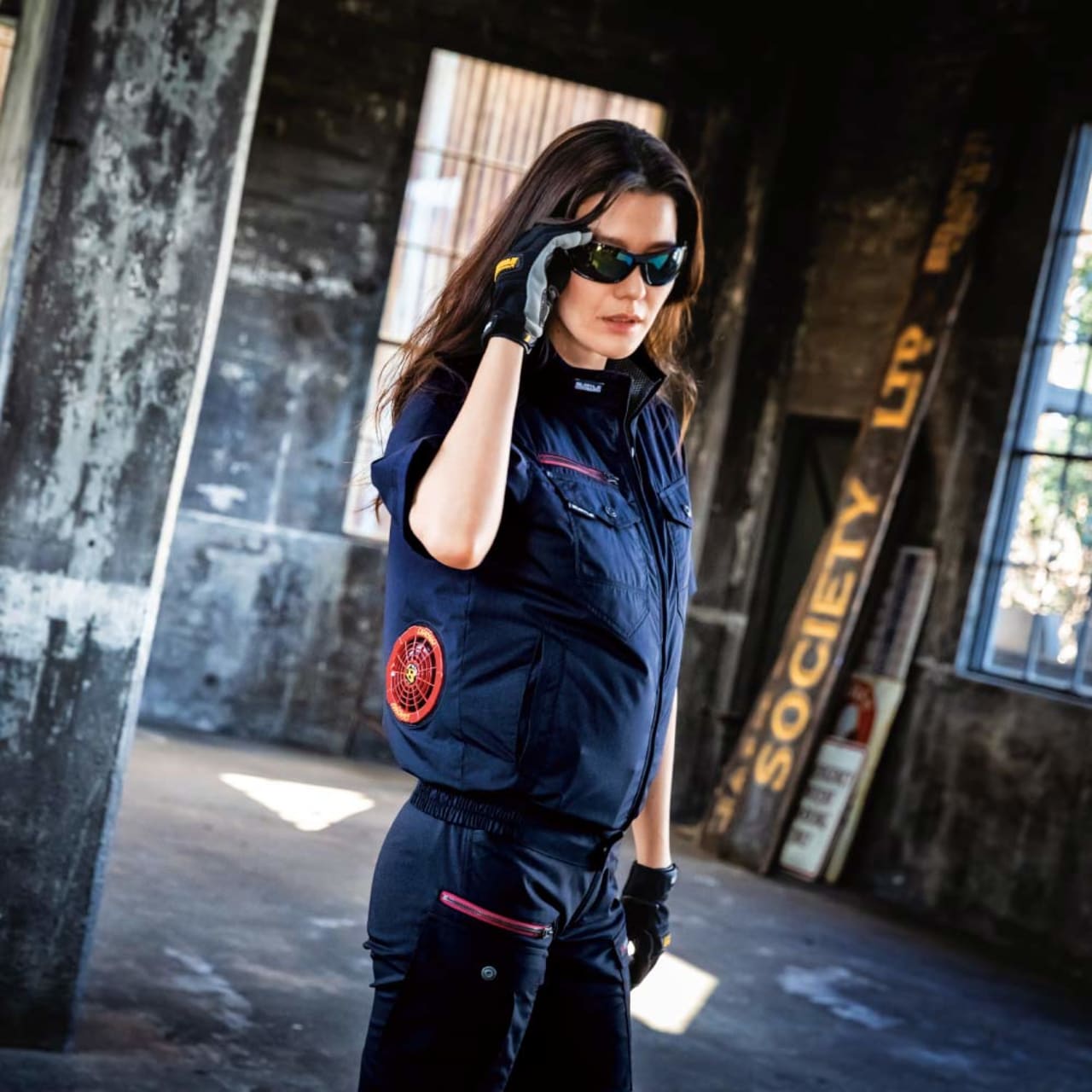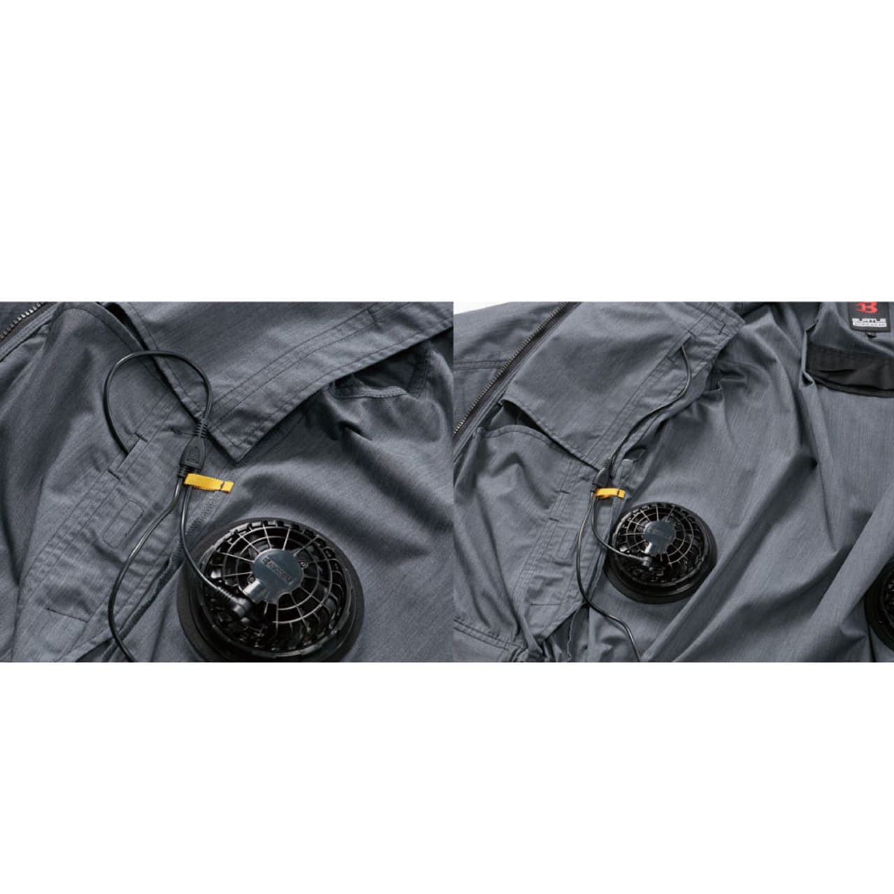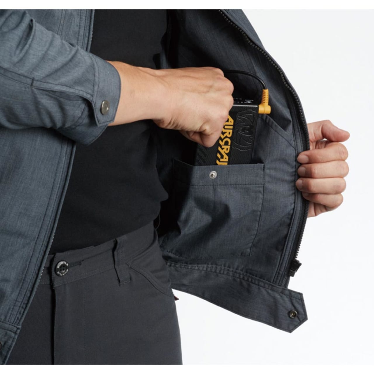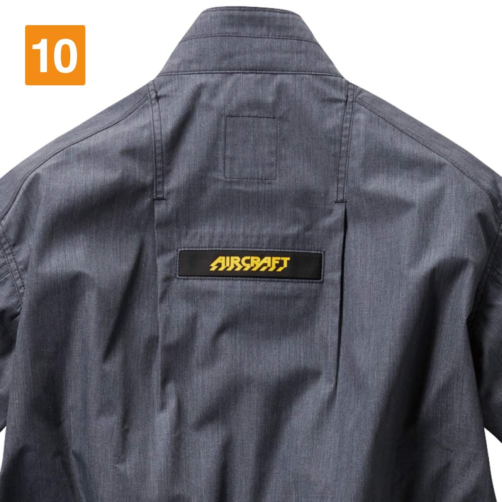 空調機能を支えるディテールの設計も秀逸な空調服です。背中内側に配置されたエアダクトで、通気量の調整が可能に。作業環境やお好みに合わせて、着心地を調整いただけます。また、服内部にはコードを固定するコードストッパーが配置されているので、ひっかかりなどの危険を抑えています。フルハーネス着用にも対応し、背中にはランヤードの取付口が配置されています。スムーズな着用を叶え、デザイン面でのアクセントとしてもおしゃれなディテールとなっています。