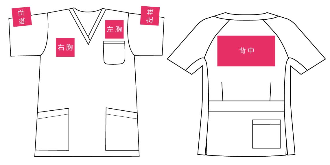| 加工箇所例 | 左胸、右胸、袖 | 背中 | 背中全面 | 左胸と背中 | 左胸と左袖と背中 |