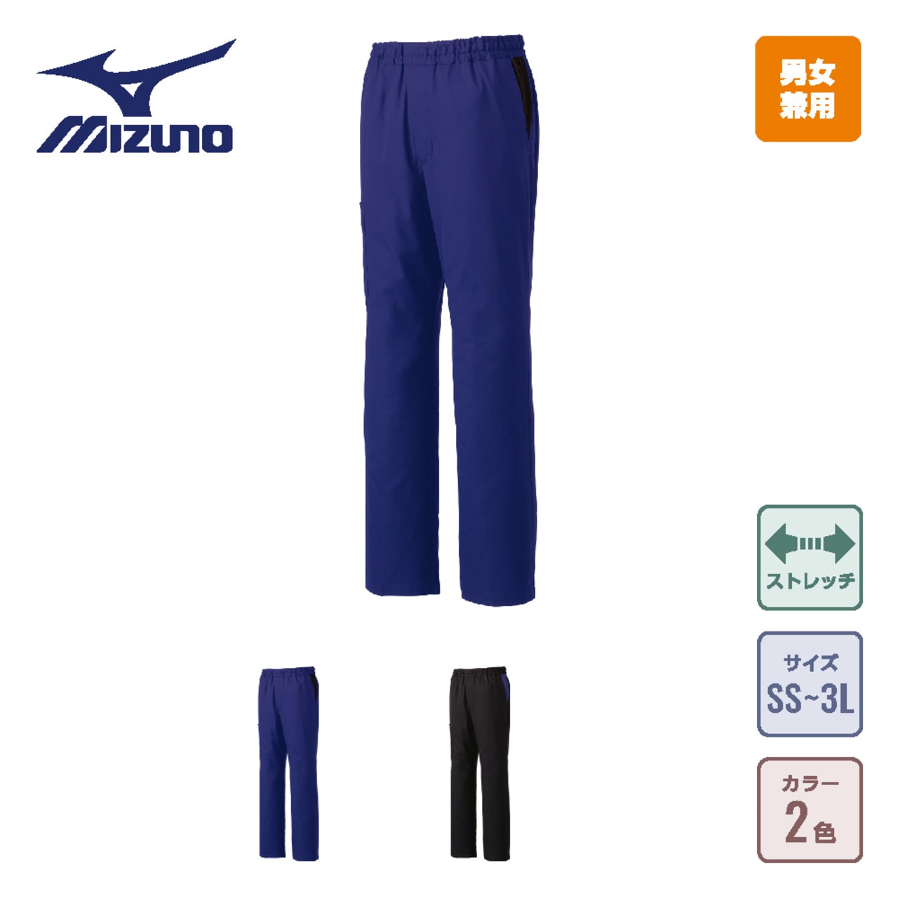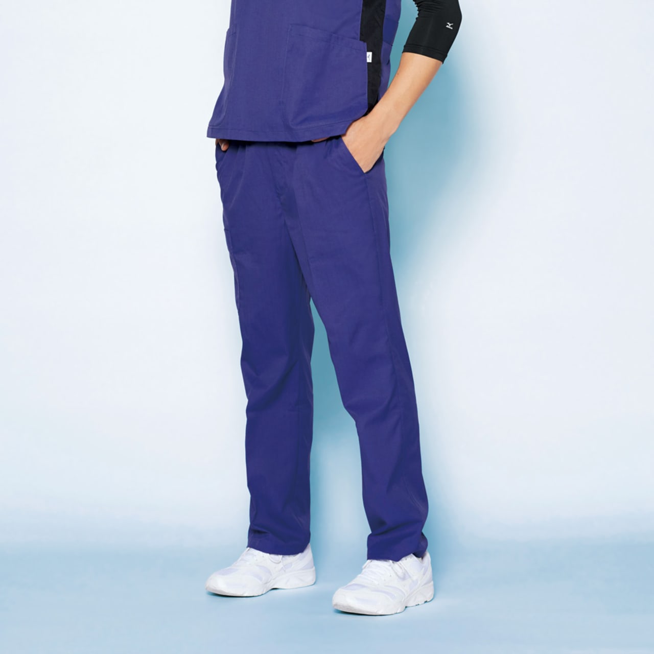 動きやすさで他の追随を許さないスクラブパンツです。独自のウェア構造「Mizuno Dynamotion Fit」が採用されており、スポーツウェアの動きやすさを応用したデザインが魅力のウェアです。股下部分にマチがとられていることで、縦横どちらにも自在にストレッチ。しゃがむ、開脚などの大きな動作でもストレスを感じさせません。また、ウエストはゴムとヒモでお好みのフィット感に調整可能。体と一体になって、スムーズな作業をささえてくれるウェアです。