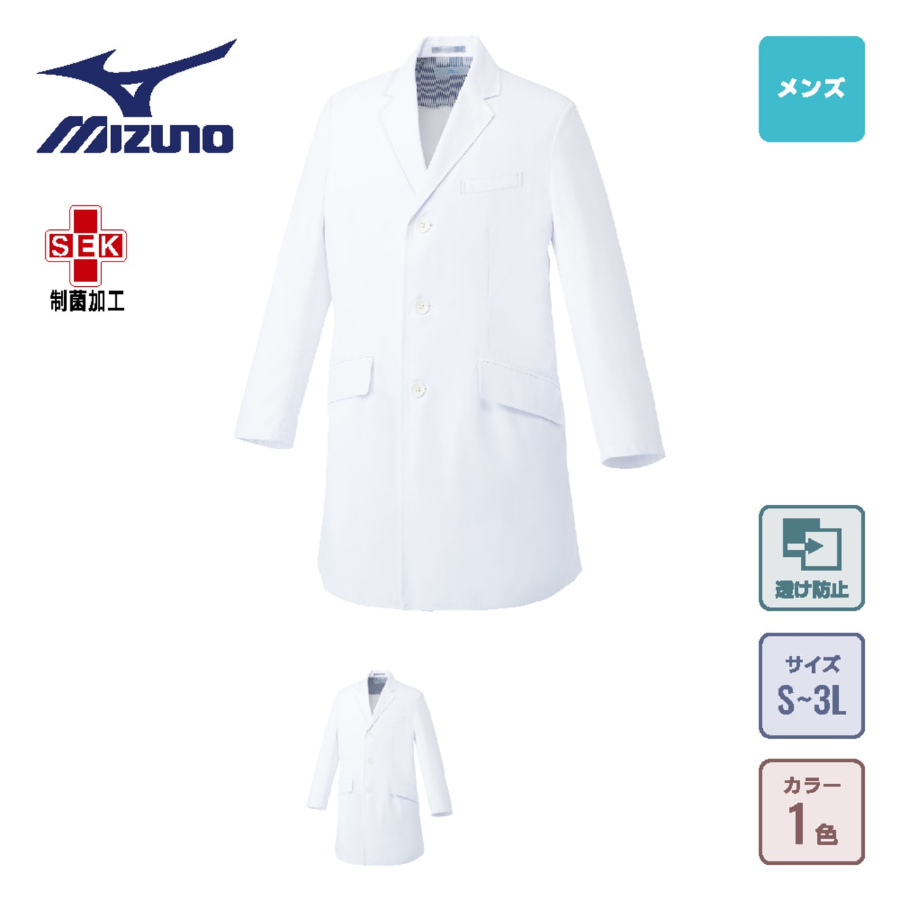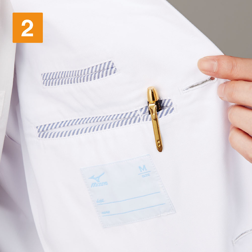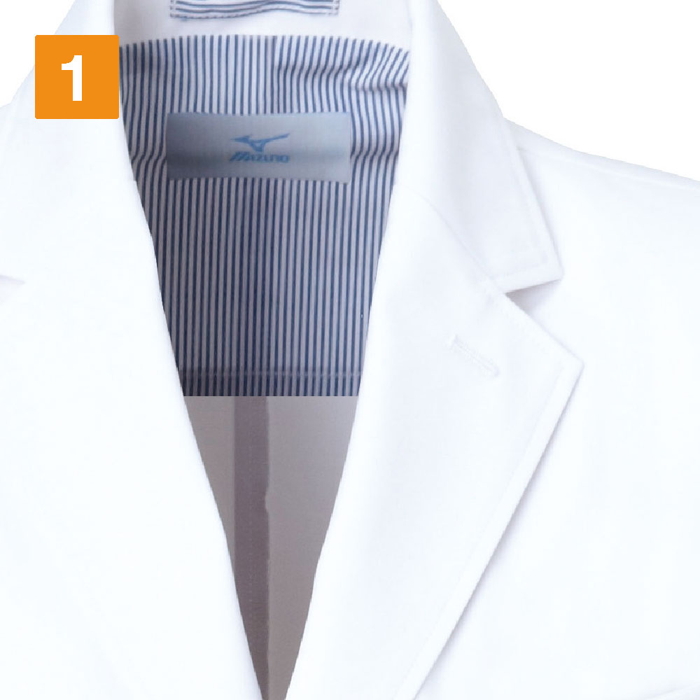 洗練された直線的なシルエットを採用し、クールな印象を与えてくれるドクターコート。動きやすく、衛生面でも優れたまさに「医療現場のための一着」です。設計には動きやすさを考え抜かれた「Mizuno Dynamotion Fit」のウェア構造が採用されています。脇下にほどよいゆとりを持たせたデザインで、腕周りの動きを妨げず軽快に。腕の上げ下げといった大きな動きにもストレスを感じません。また衛生面でも優れた性能を持ち、高い制菌性能加工を証明するSEKマークを取得しています。衛生面でシビアさが求められる環境でも、安全に着用いただけるコートです。