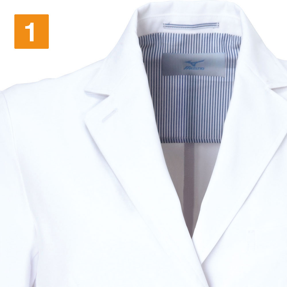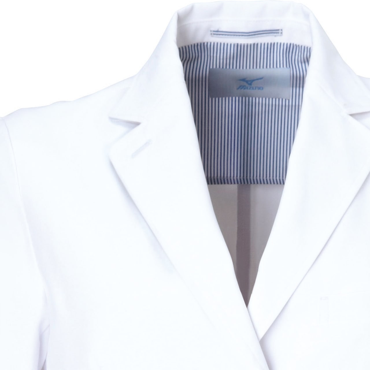 美しく女性らしいシルエットで、凛とした雰囲気を演出するドクターコートです。動きやすさや衛生面でも優れた機能で、医療現場でのお仕事をサポートしてくれる一着です。動きやすさを追及したウェア構造である「Mizuno Dynamotion Fit」の設計が取り入れられ、脇下にゆとりを持たせた設計で、一般的なドクターコートよりも腕周りの動きがスムーズに。腕の上げ下ろしのような大きな動きもストレスを感じさせません。また、高い制菌性能加工が施されている証のSEKマークを取得しています。衛生的にデリケートな現場でも、安全に着用いただけるコートです。