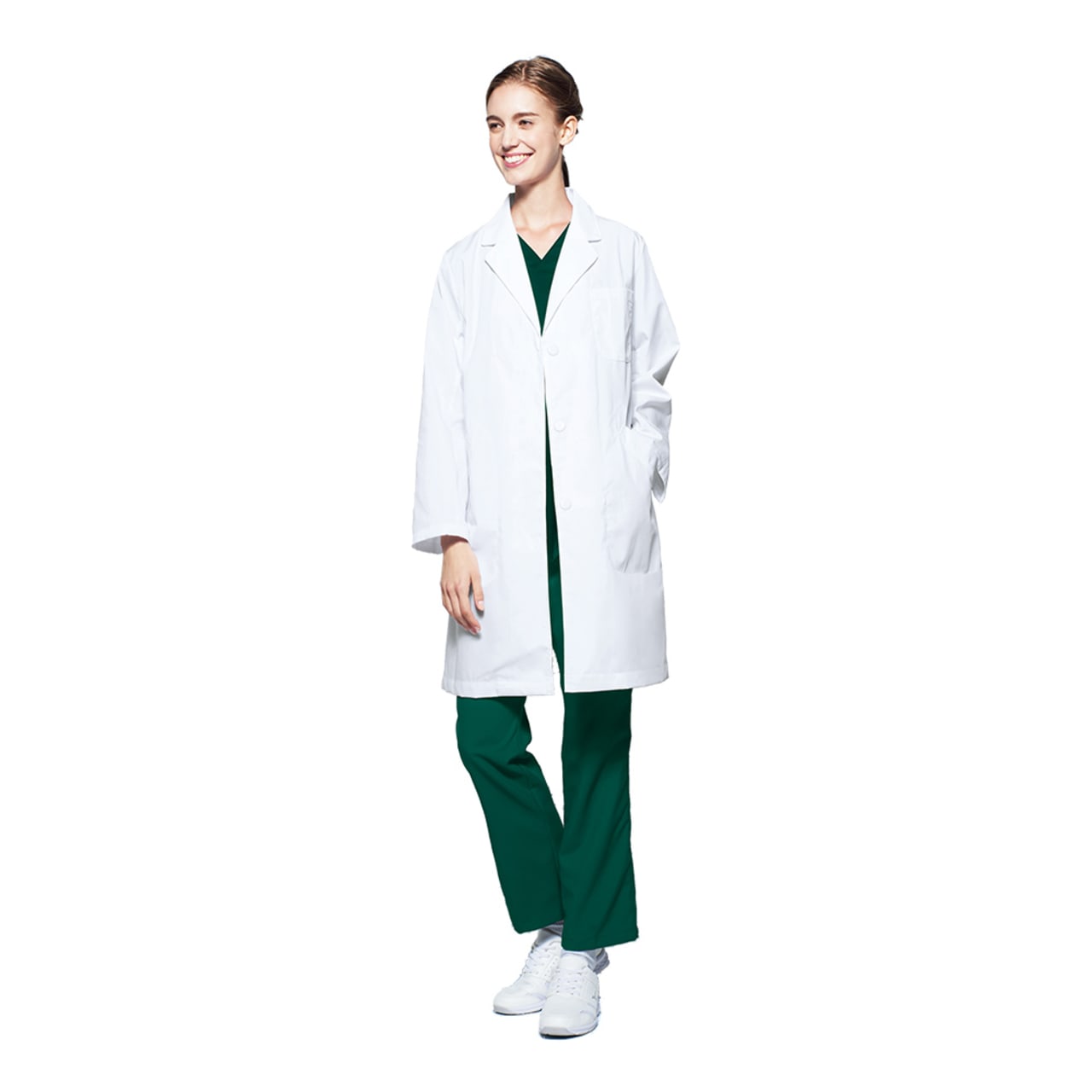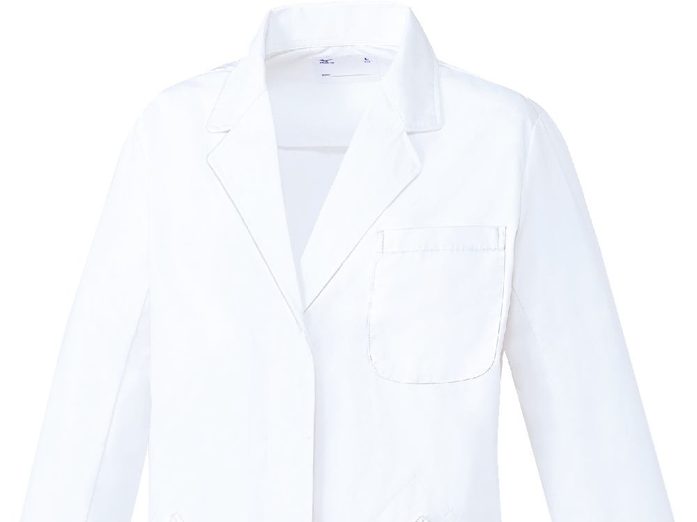 医療現場での人の動作を考慮した設計がポイントのメディカルウェアです。丈は長さを太ももの中間程度までに抑えた動きやすい設計。足さばきをスムーズにし、緊急時やとっさの動きにも生地が妨げになりません。また、袖下部に適度なゆとりを持たせることで、一般的なドクターコートと比較し腕の可動域を大幅にアップ。ストレスのない動作を可能にしています。また、ボタンが生地に隠れる比翼仕立てで、すっきりとした見た目に。ボタンが物にひっかかりにくく、安全性の面でも優れたディテールです。