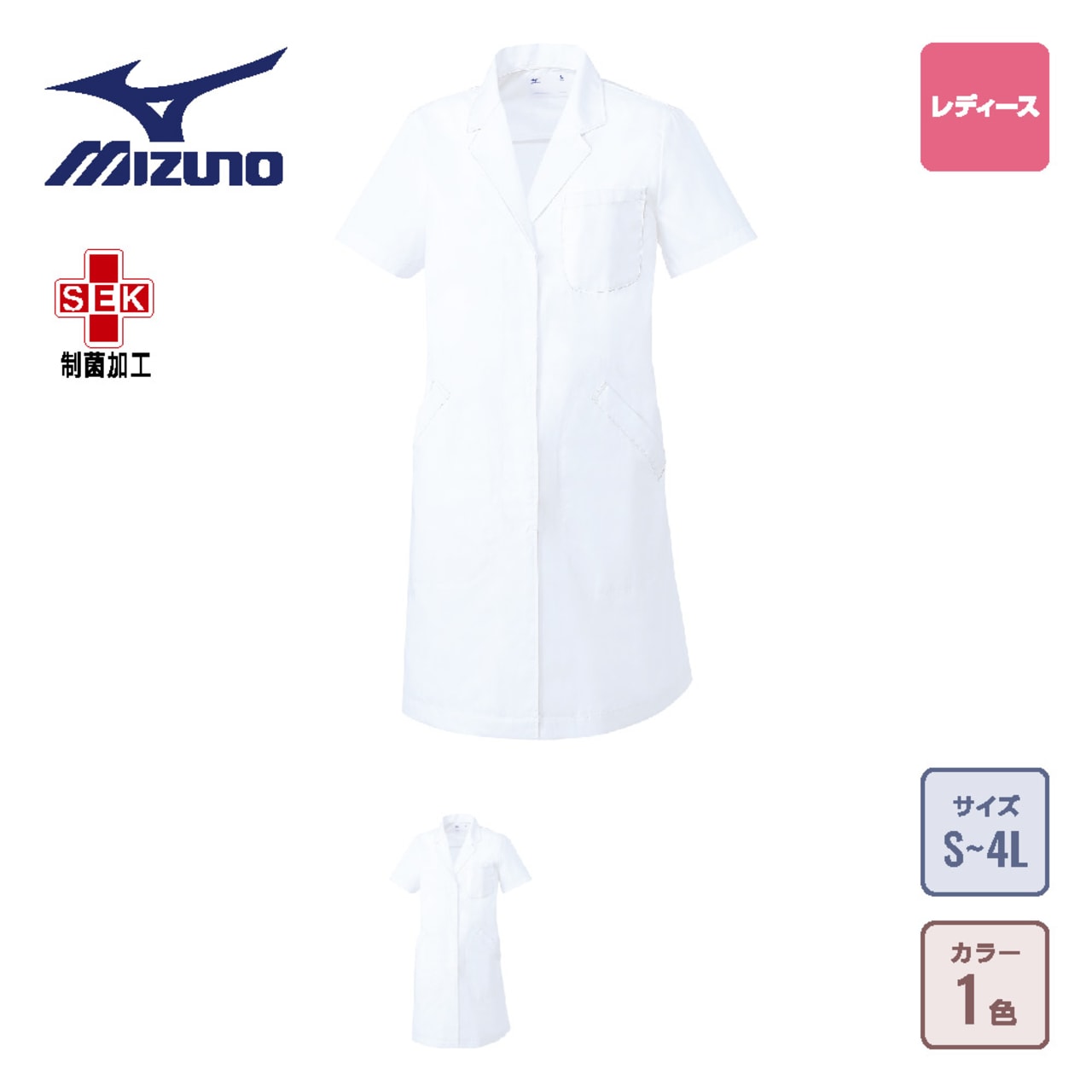 医療現場での着用を考え抜かれた、充実の機能が光る一着です。収納面では、胸と両脇の3ヵ所に配置されたポケットで、持ち物をすっきりと整頓して持ち運べます。胸のポケットには便利なペン差し付きで、メモなどの際もスマートに対応可能です。衛生面では、業務用の繊維製品を対象とした制菌加工済みのSEKマークの認証を受けており、清潔かつ安全なお仕事を可能にします。また、生地は防汚加工が施され、汚れが付きにくくお手入れも簡単。毎日のストレスを感じさせない、機能面でも高評価のドクターコートに仕上がっています。
